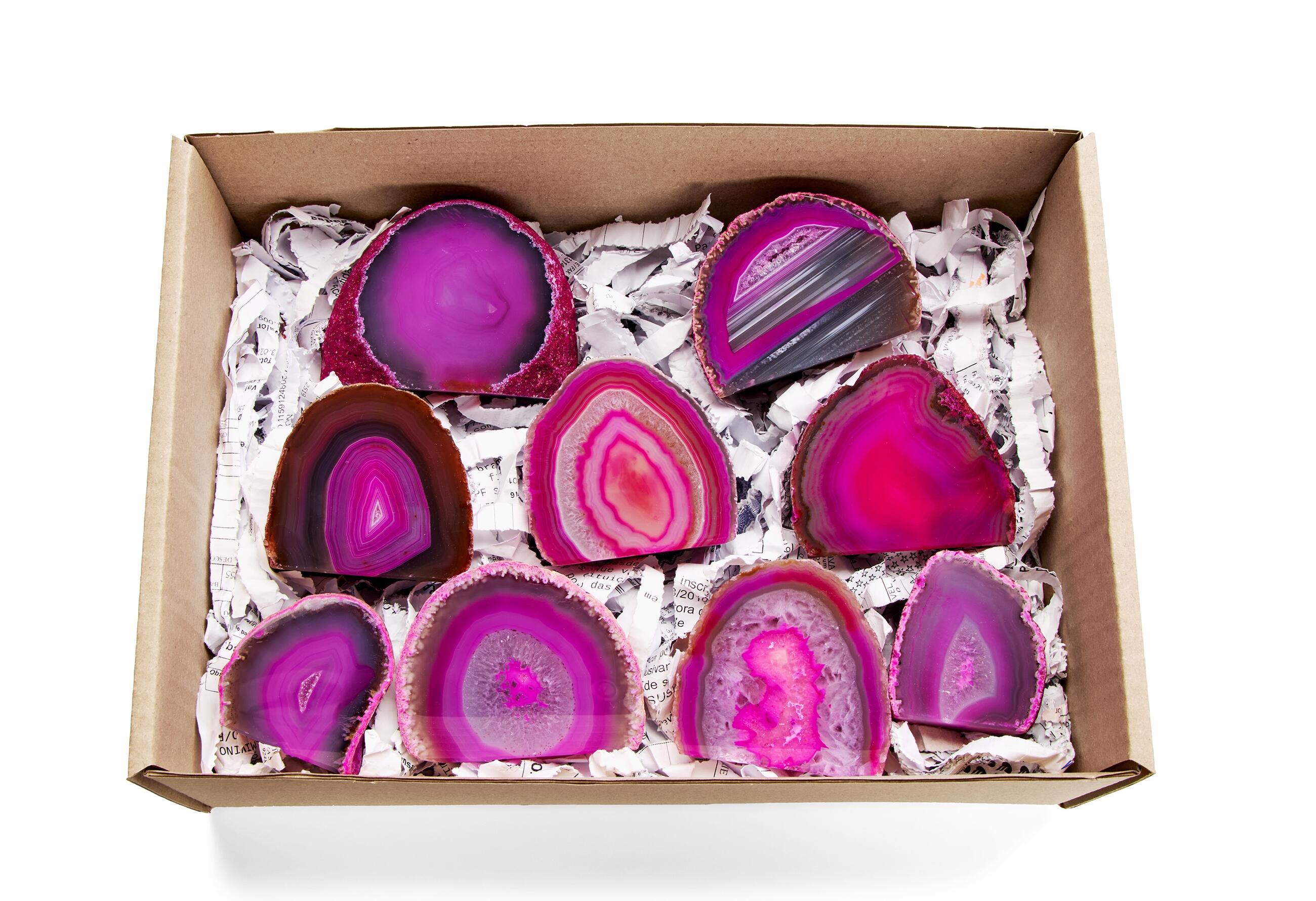 Agate Half Cut Base Pink Box