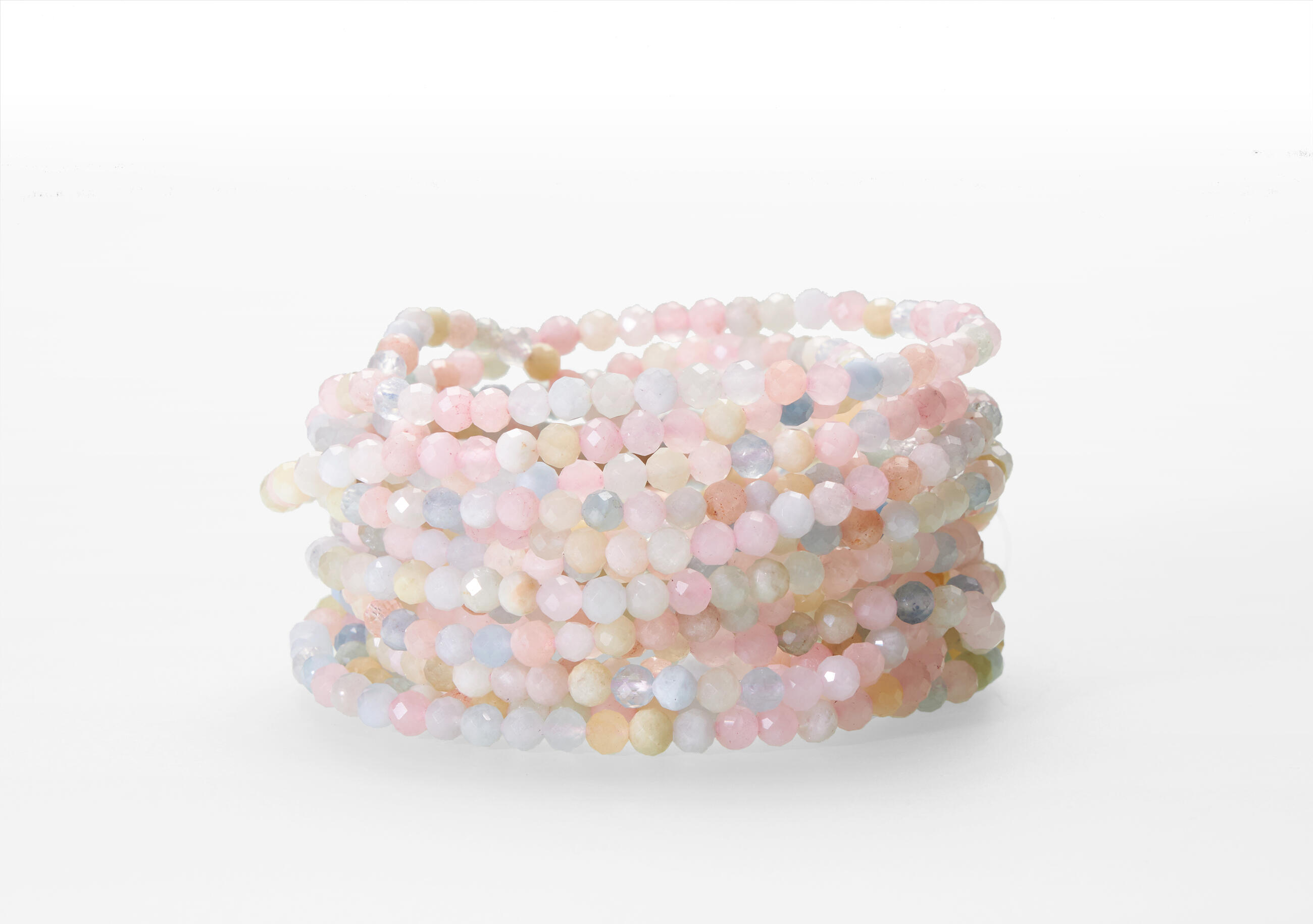 Morganite is a gemstone variety of beryl. You can find morganite shading in various colours – from white and blue-green, to pink. With our bracelet, you get different colour variants of morganite.
