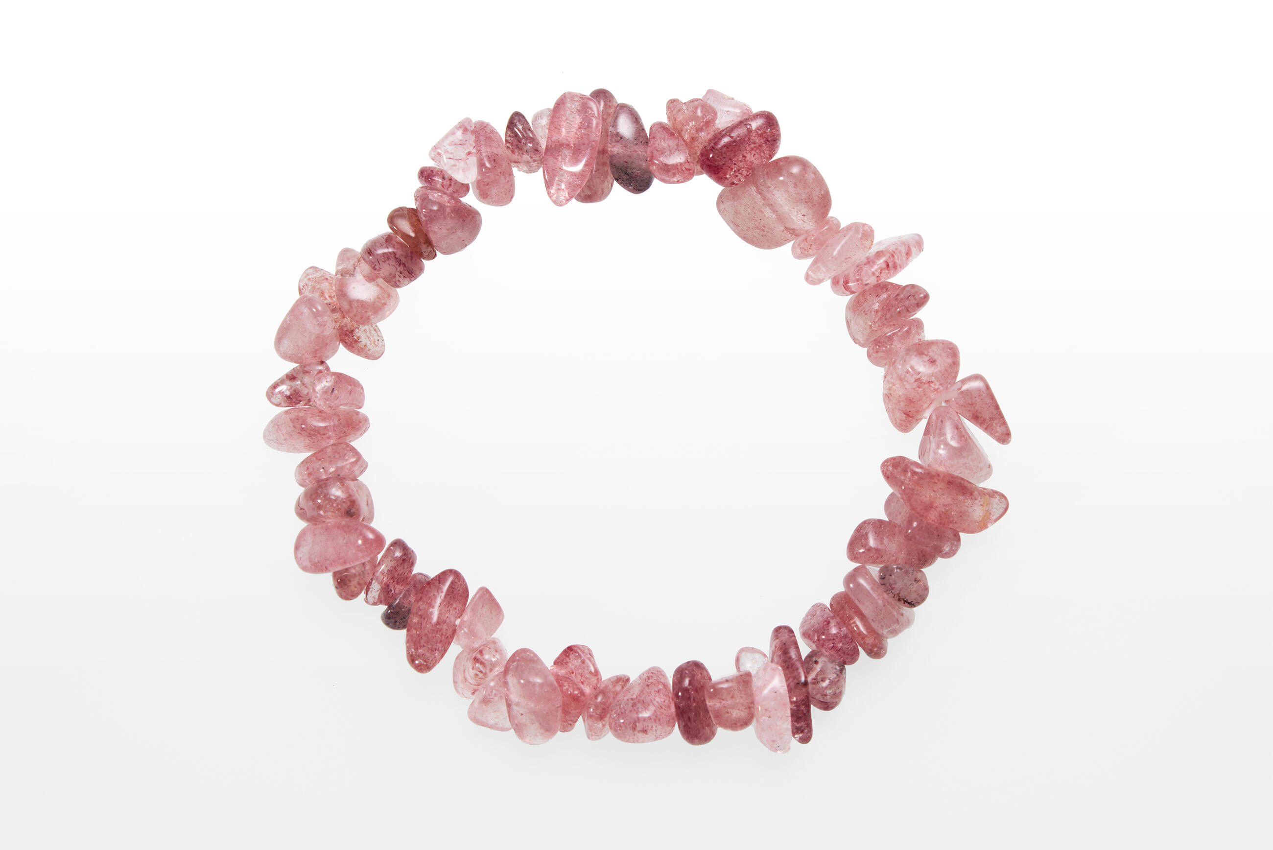 Strawberry quartz is a rare and charming mineral boasting red inclusions of iron oxide and a vitreous lustre. If we look at its chemical structure, quartz is a variety of chalcedony, which is a generic name for fibrous, cryptocrystalline quartz.