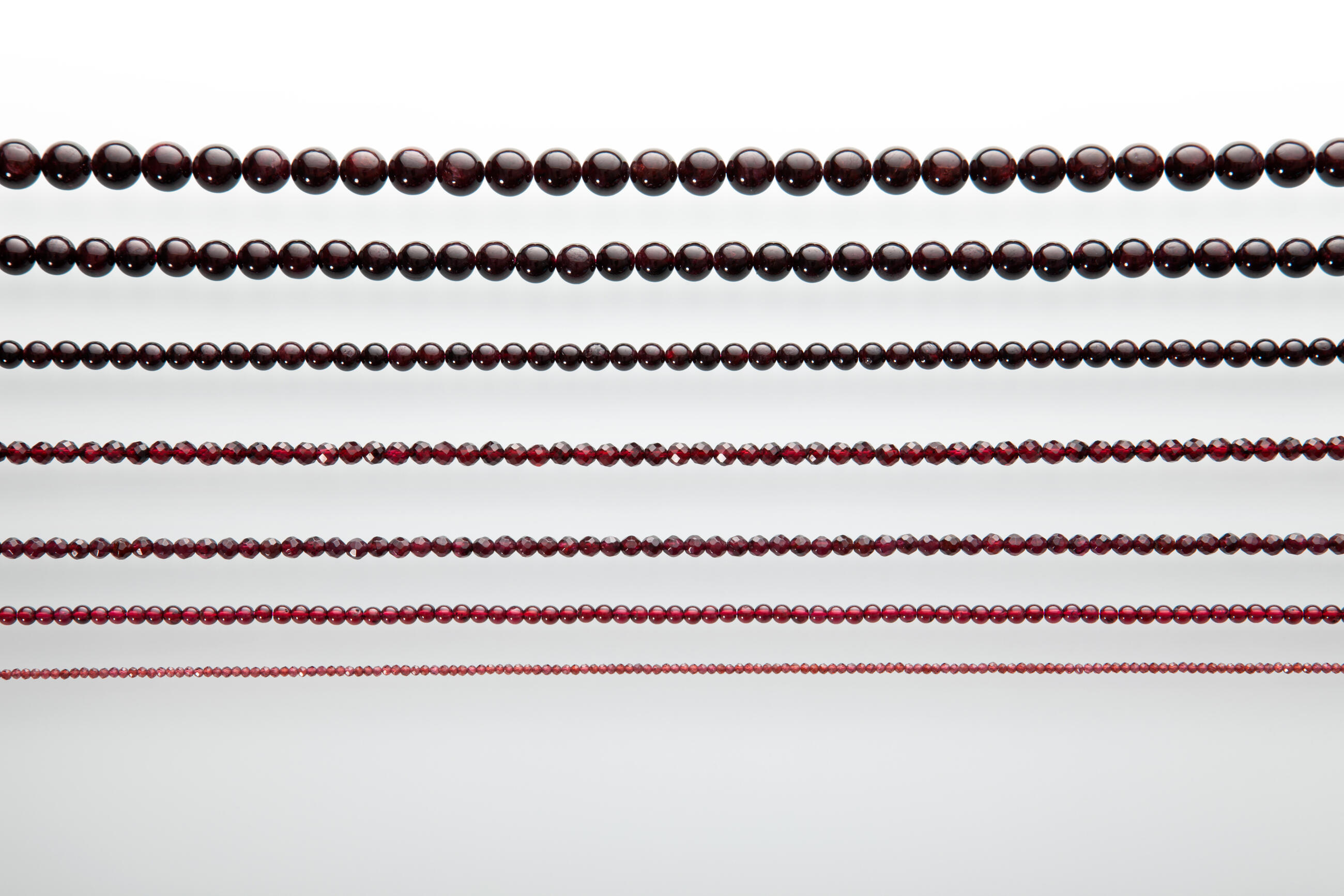 There are about fifteen variants of garnet, differing in their colour – the most popular are pyrope (red), almandine (red-purple), grossular (green) and spessartine (orange). Our garnets are from mines in Bahia, Brazil. If we look at its chemical structure, garnets are a group of important rock-forming minerals of silicates, containing aluminium, iron, calcium, magnesium, manganese, chromium and other elements.