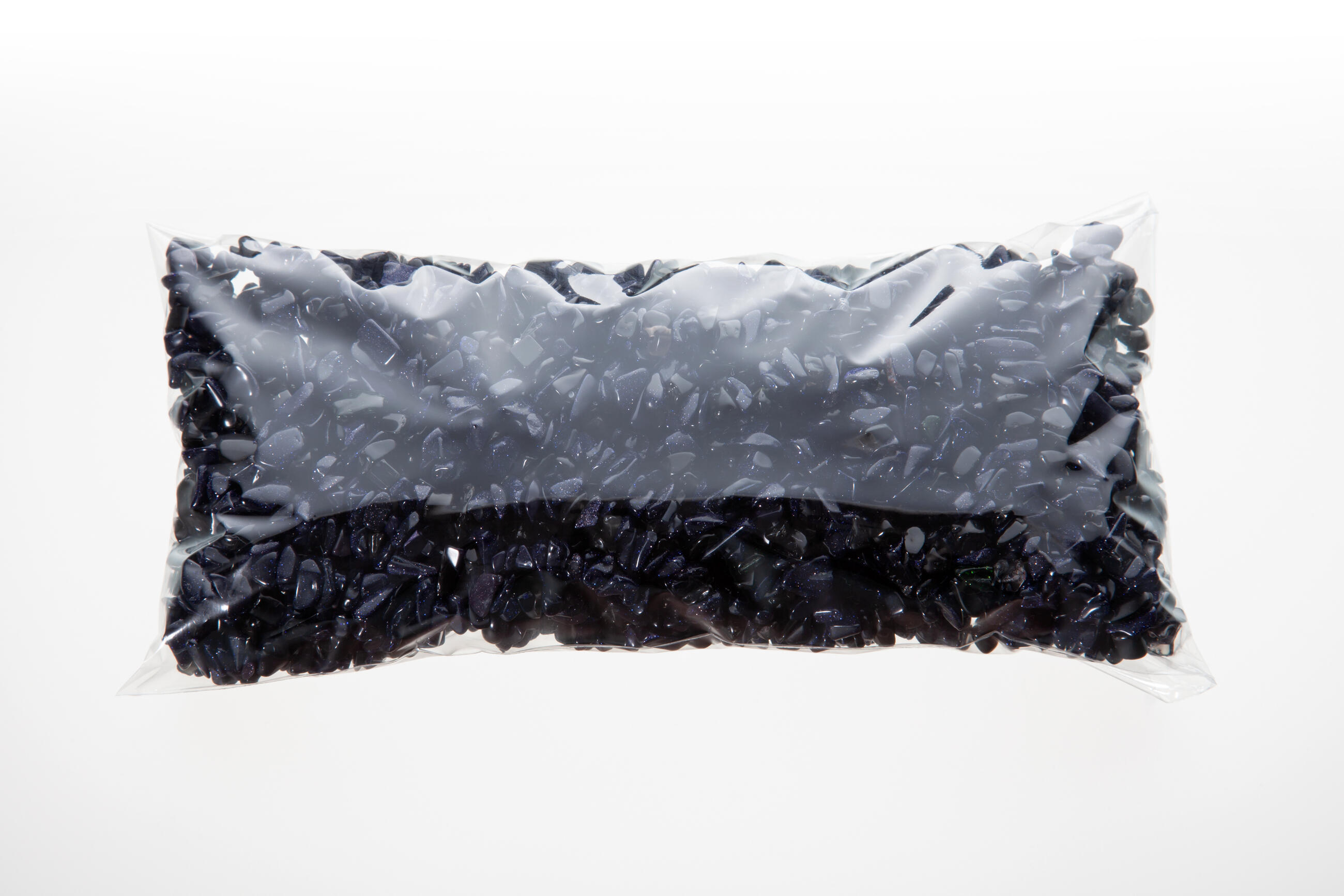 Blue goldstone is an artificially made stone with captivating glittery blue colour. Despite its synthetic nature, blue aventurine surprises with natural look. It is, in fact, a glassy matter with glittering inclusions’ particles. In light, these particles create visual effects similar to those of natural stones. This material is from China.