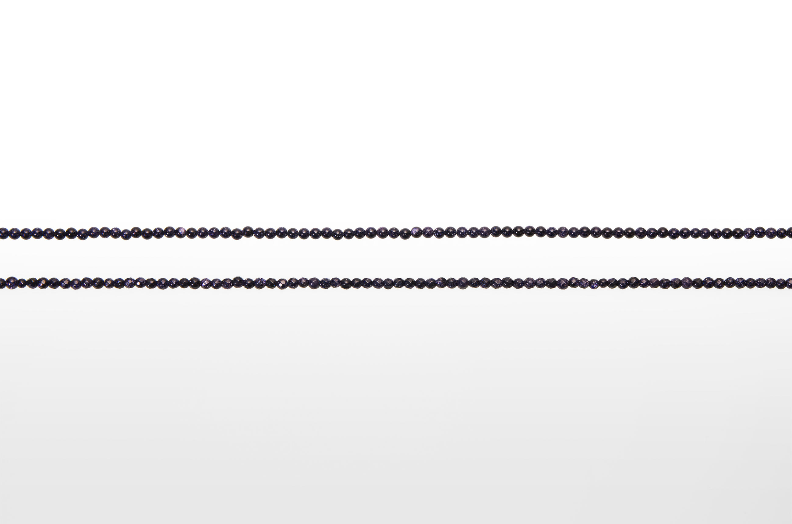 Goldstone blue is an artificially made stone with blue tint. It is, in fact, a glassy matter with tiny copper particles creating goldish glitter. These particles are oriented in one direction, so when the stone is appropriately faceted, it exhibits light effects similar to the starry sky.