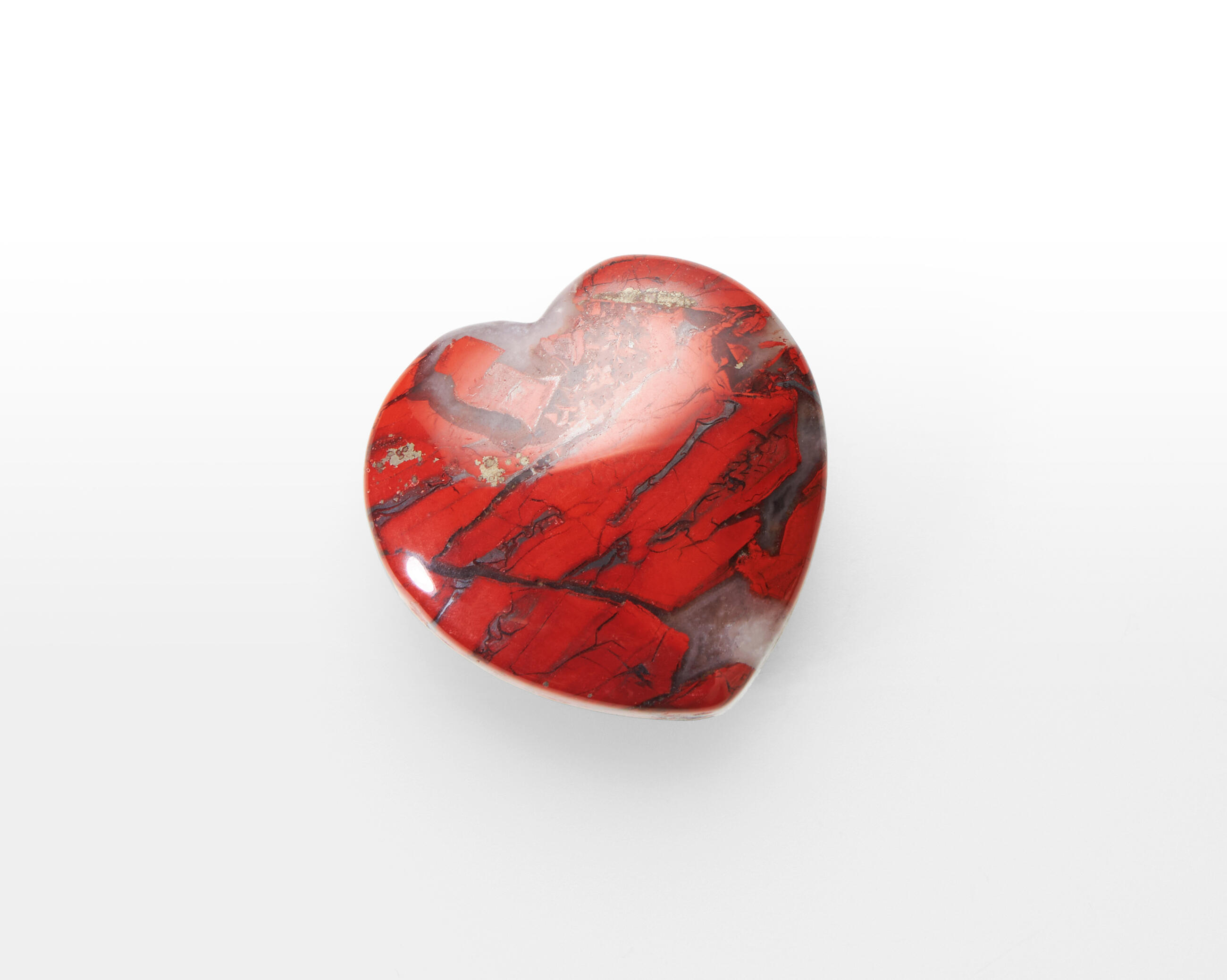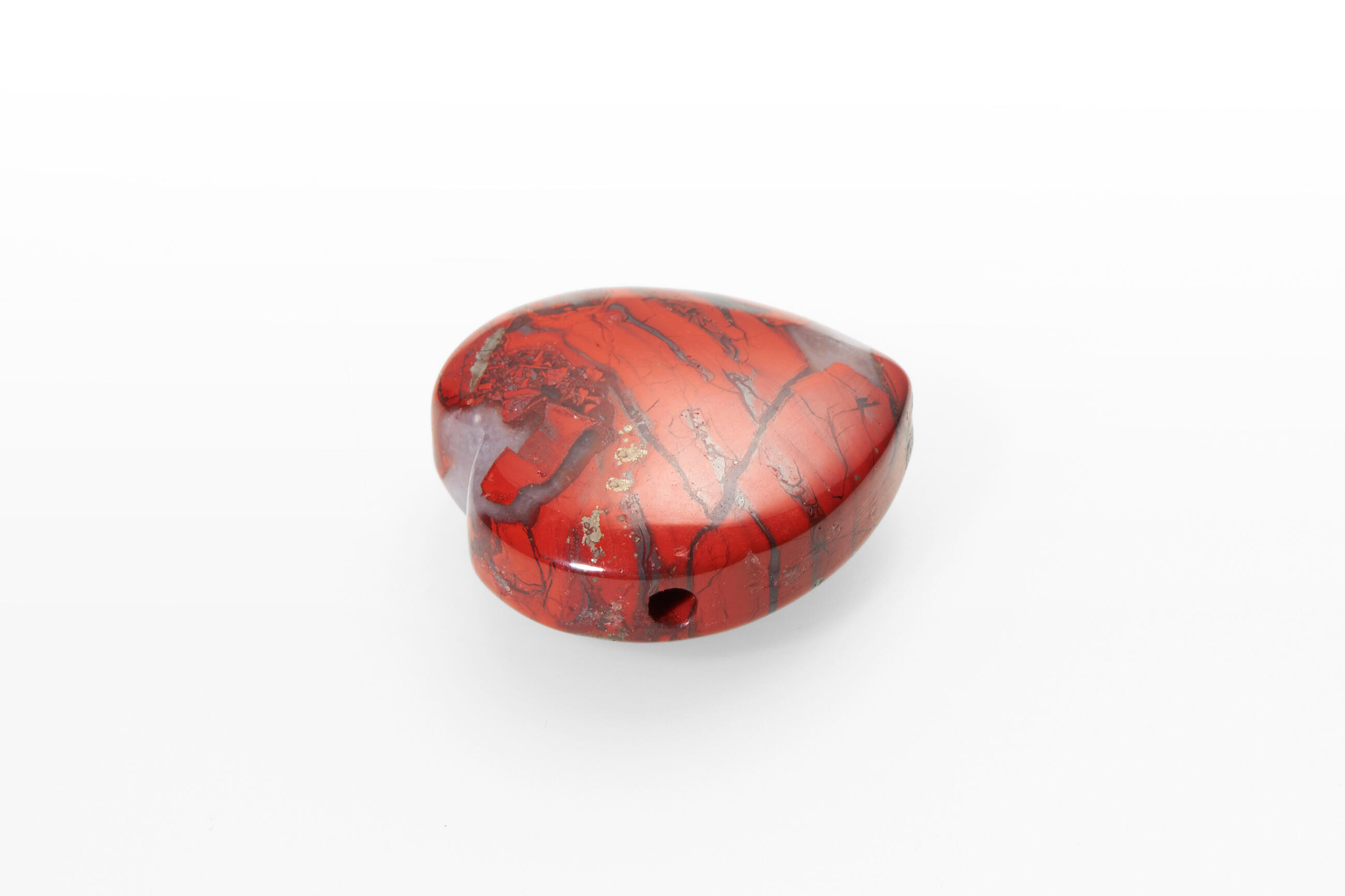Thanks to the large portion of admixtures in their structure, jaspers are a colourful group of minerals. Brecciated jasper catches one’s eye with a red tint. In the structure of this mineral are fragments of rocks merged with a quartz matter. The raw material is from South Africa. If we look at its chemical structure, brecciated jasper is a variety of chalcedony, which is a general name for fibrous, cryptocrystalline quartz.