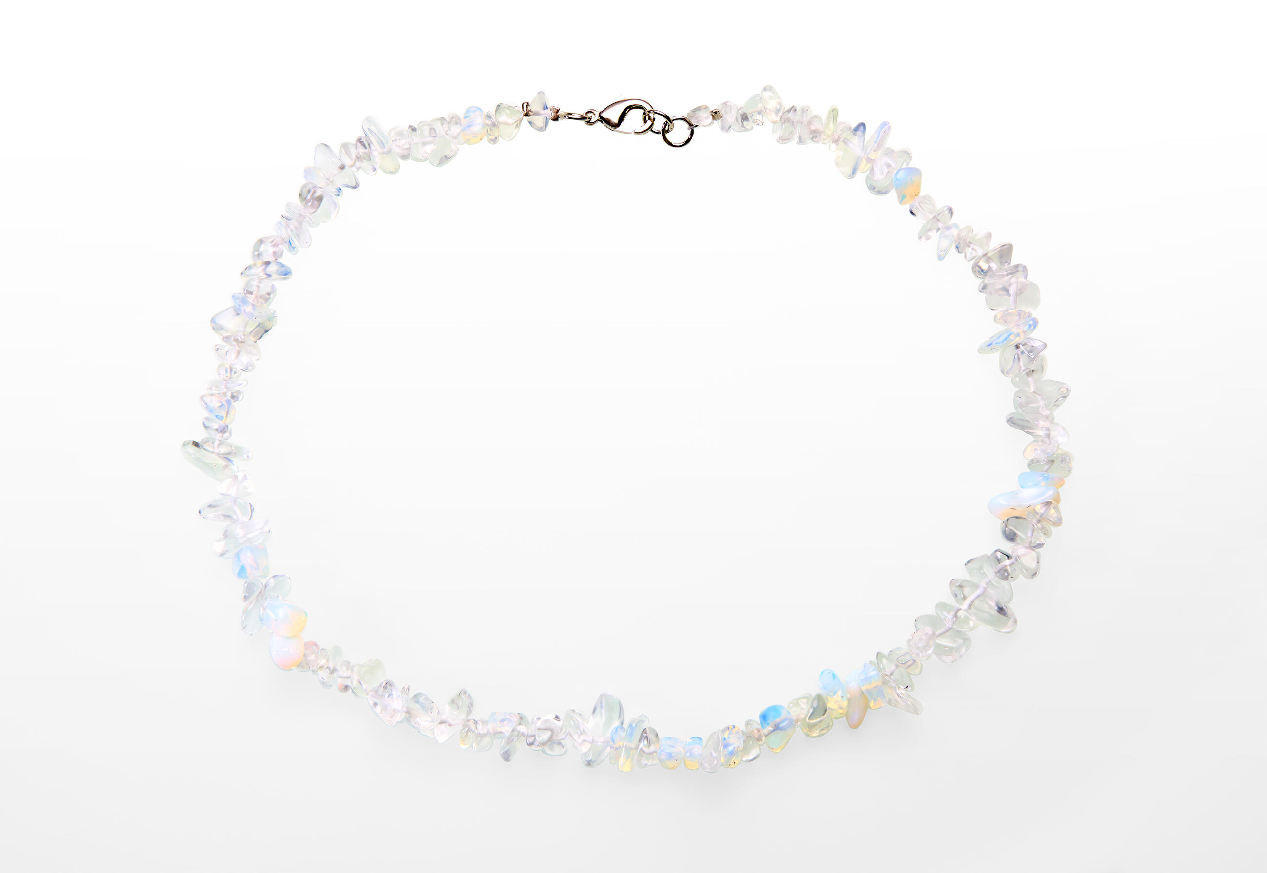 Opalite is an artificially made opal glass, resembling a moonstone. It stands out for its beautiful milky, rainbow-like design, for which the stone has been getting more and more popular in jewellery. The raw material is from China.