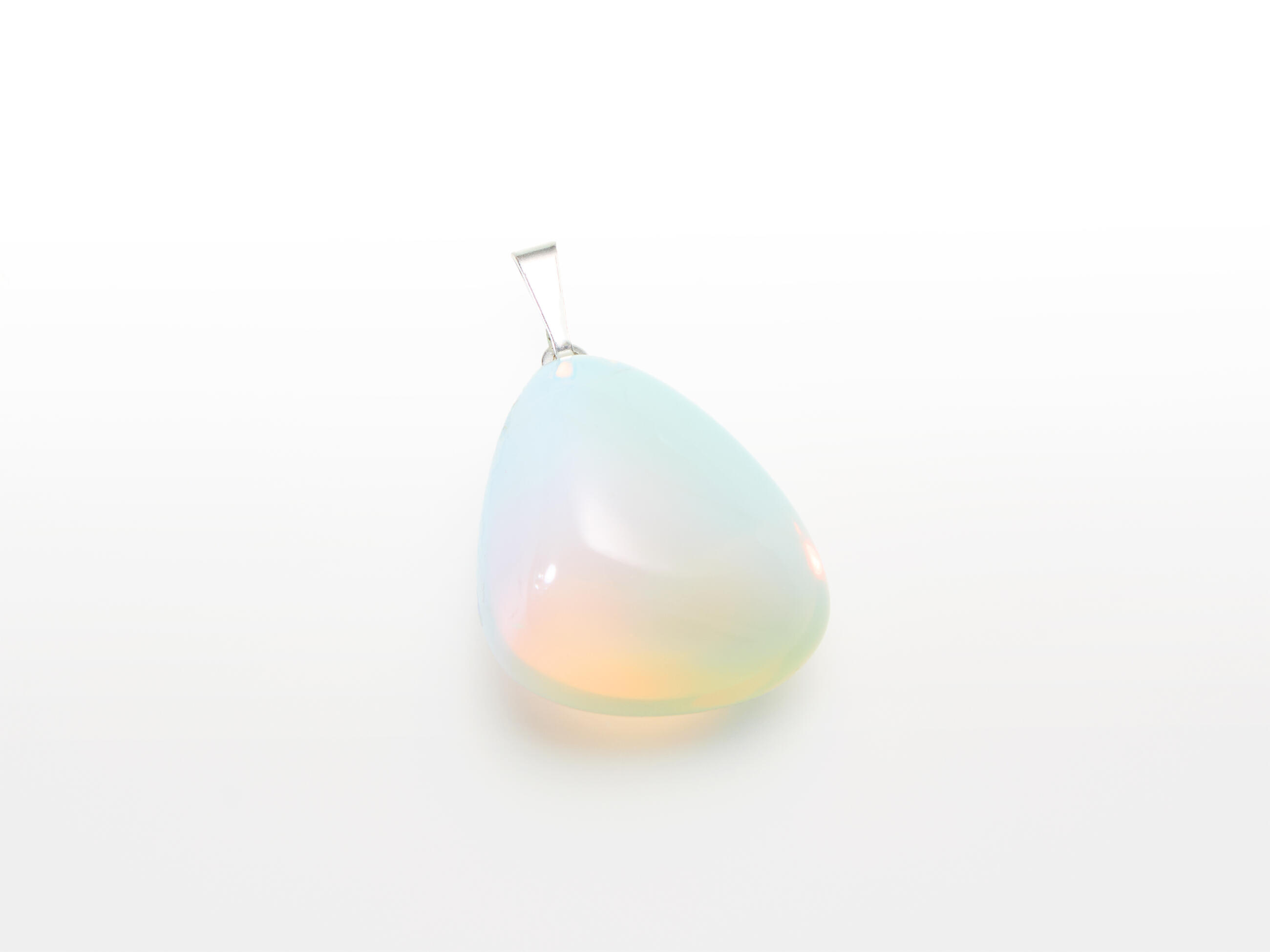 Opalite is an artificially made opal glass, resembling a moonstone. It stands out for its beautiful milky, rainbow-like design, for which the stone has been getting more and more popular in jewellery. The raw material is from China.