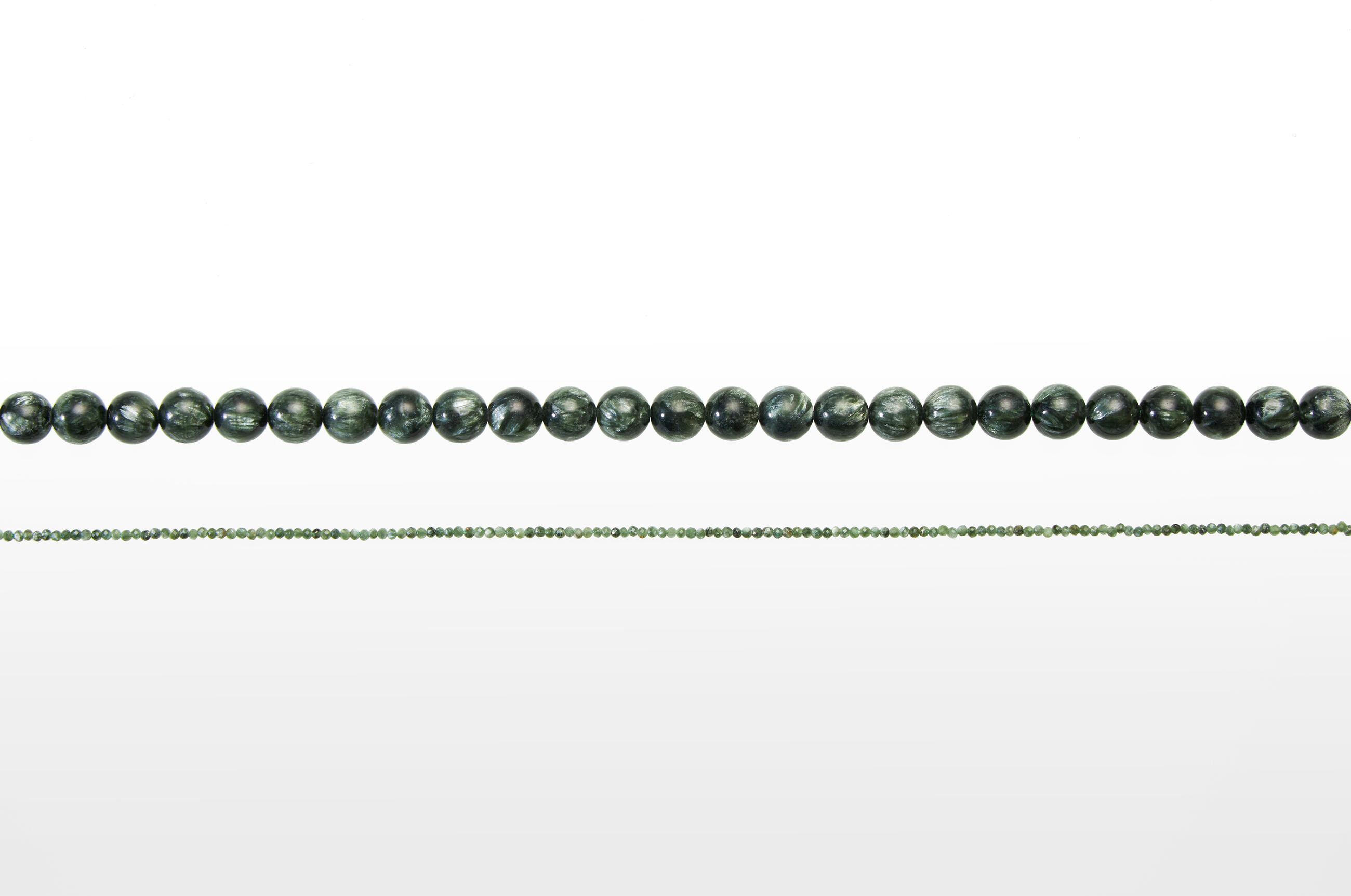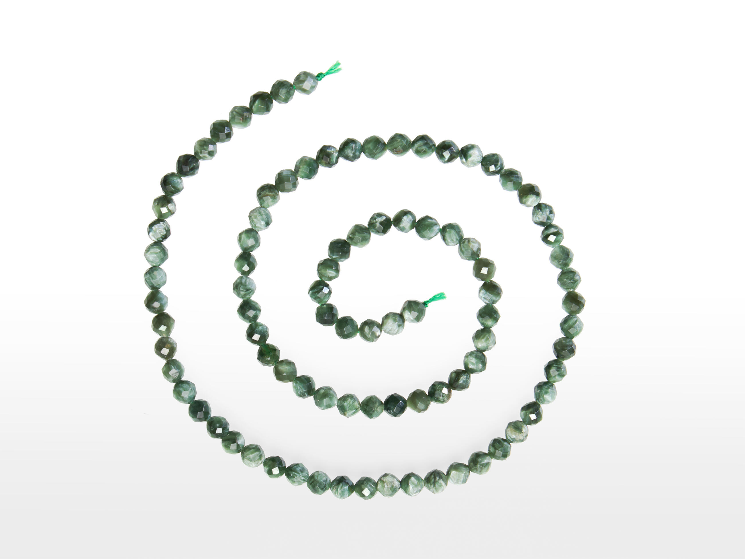 Seraphinite is also called the Angel stone. It catches one’s eye with its grey-green to green-black colour highlighted by a silky lustre. You may sometimes find pieces with striking patterns resembling a bird’s feather. This rare mineral can be found in a single deposit – the Lake Baikal area in Russia. If we look at its chemical structure, seraphinite is a gemstone variety of clinochlore, which is chlorite from a group of silicates resembling micas.