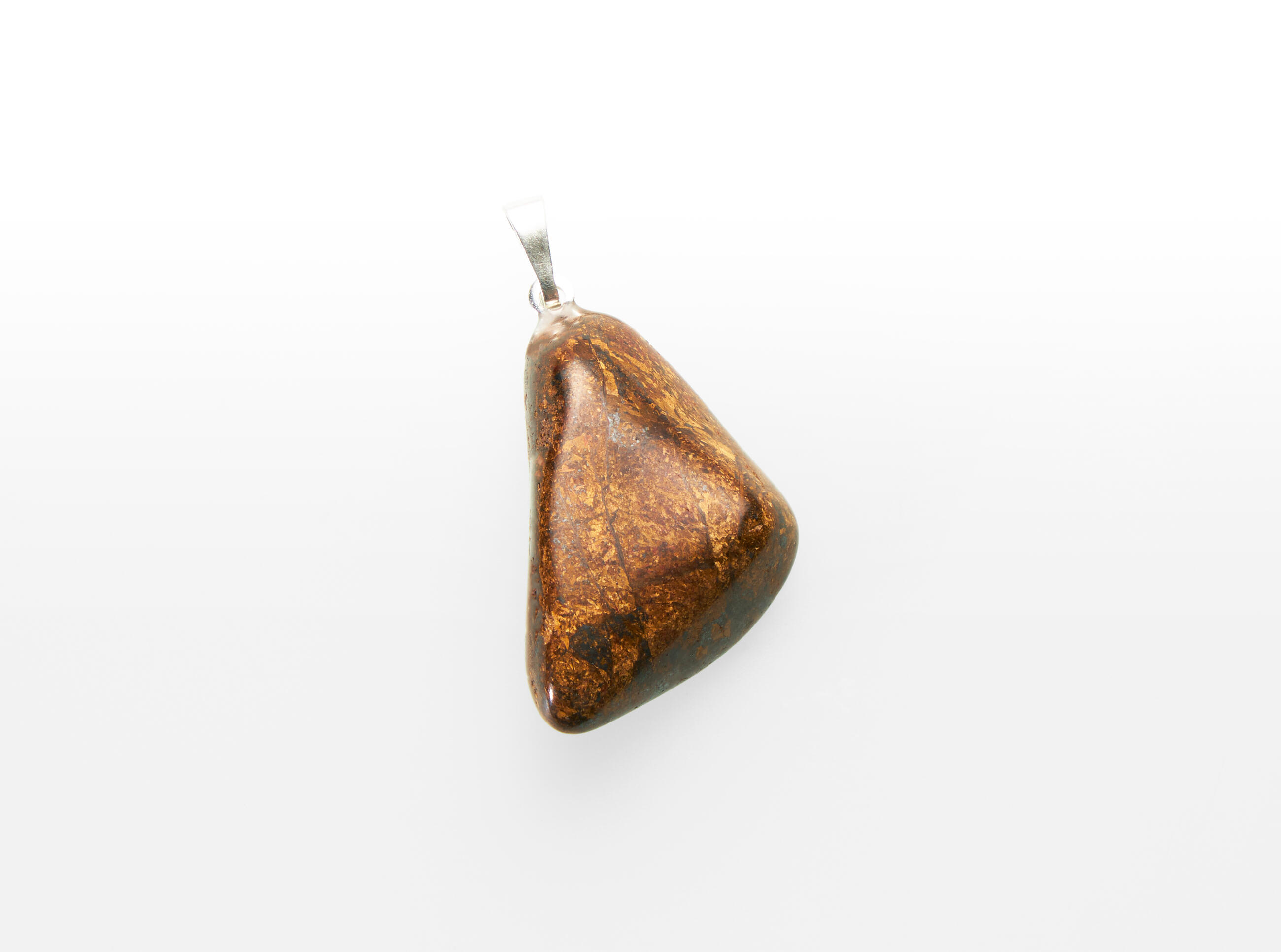 Bronzite belongs to the diamond pyroxene group of minerals. It is, in fact, a variety of enstatite, but with iron. Raw bronzite is mined in Goiás, Brazil. As its name suggests, this stone is of bronze look. The more iron in the bronzite, the deeper its bronze colour. If the stone is adequately oriented, you can see the highly metallic lustre of its crystal grains.