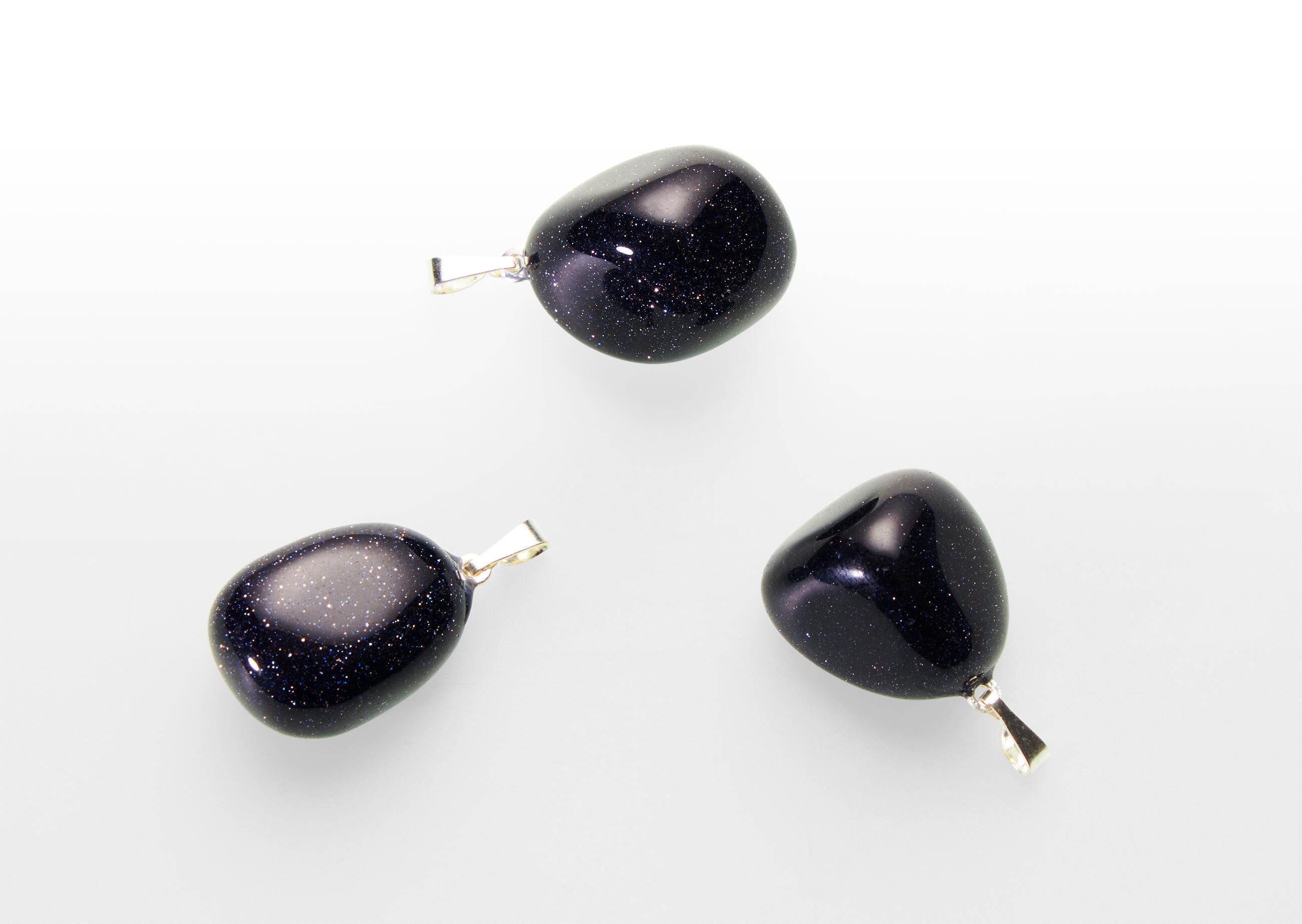 Blue goldstone is an artificially made stone with captivating glittery blue colour. Despite its synthetic nature, blue goldstone surprises with natural look. It is, in fact, a glassy matter with glittering inclusions’ particles. In light, these particles create visual effects similar to those of natural stones. This material is from China.