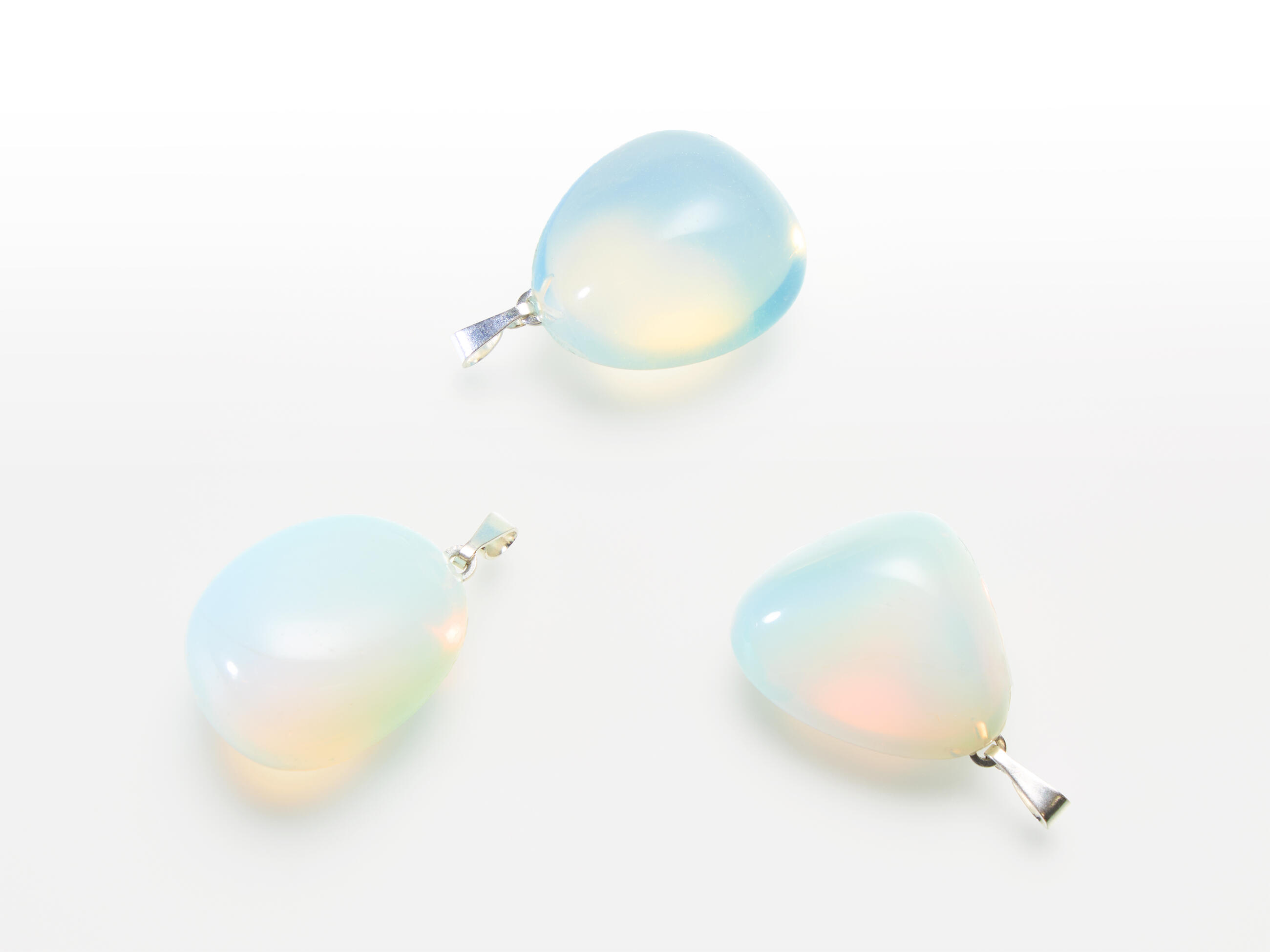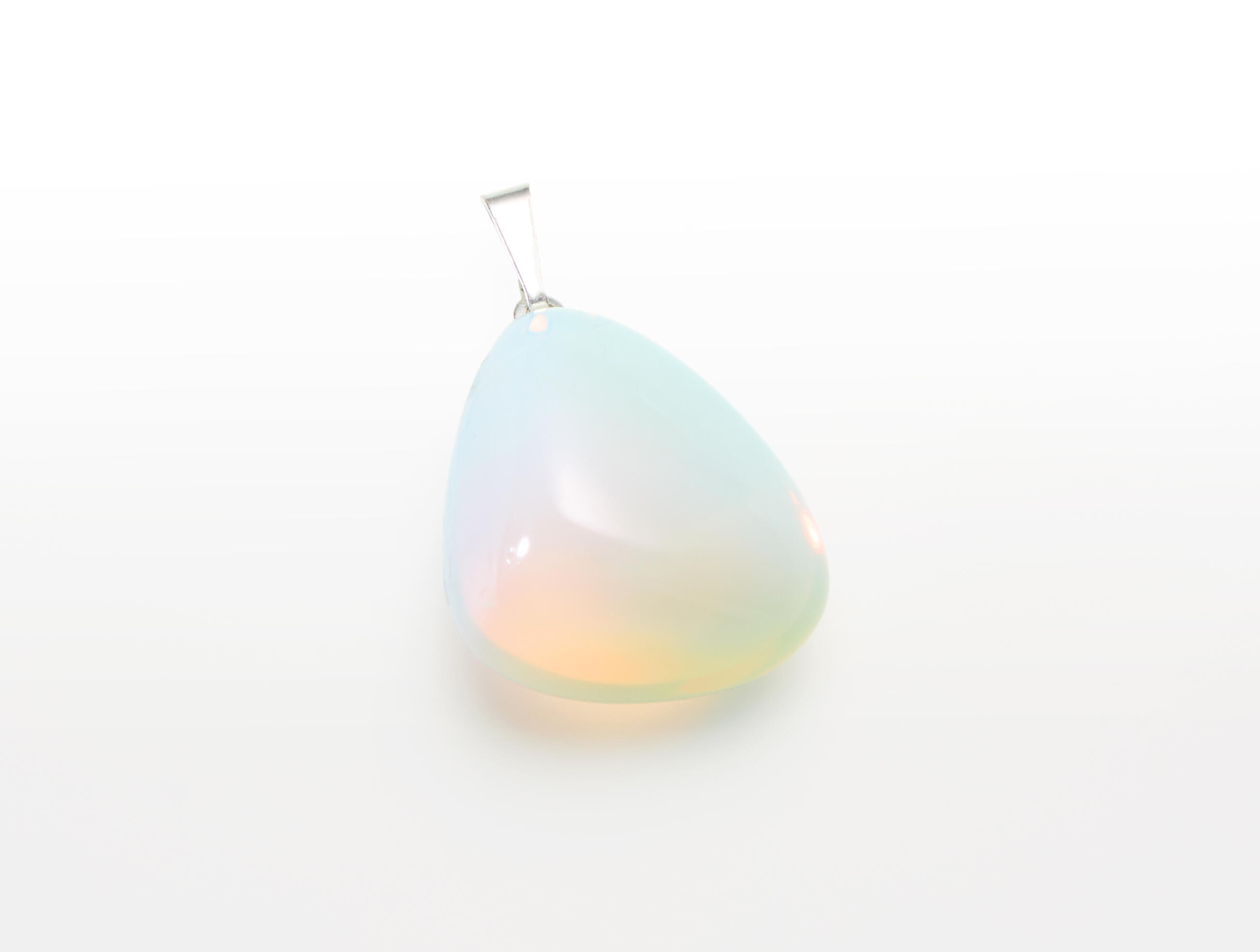 Opalite is an artificially made opal glass, resembling a moonstone. It stands out for its beautiful milky, rainbow-like design, for which the stone has been getting more and more popular in jewellery. The raw material is from China.