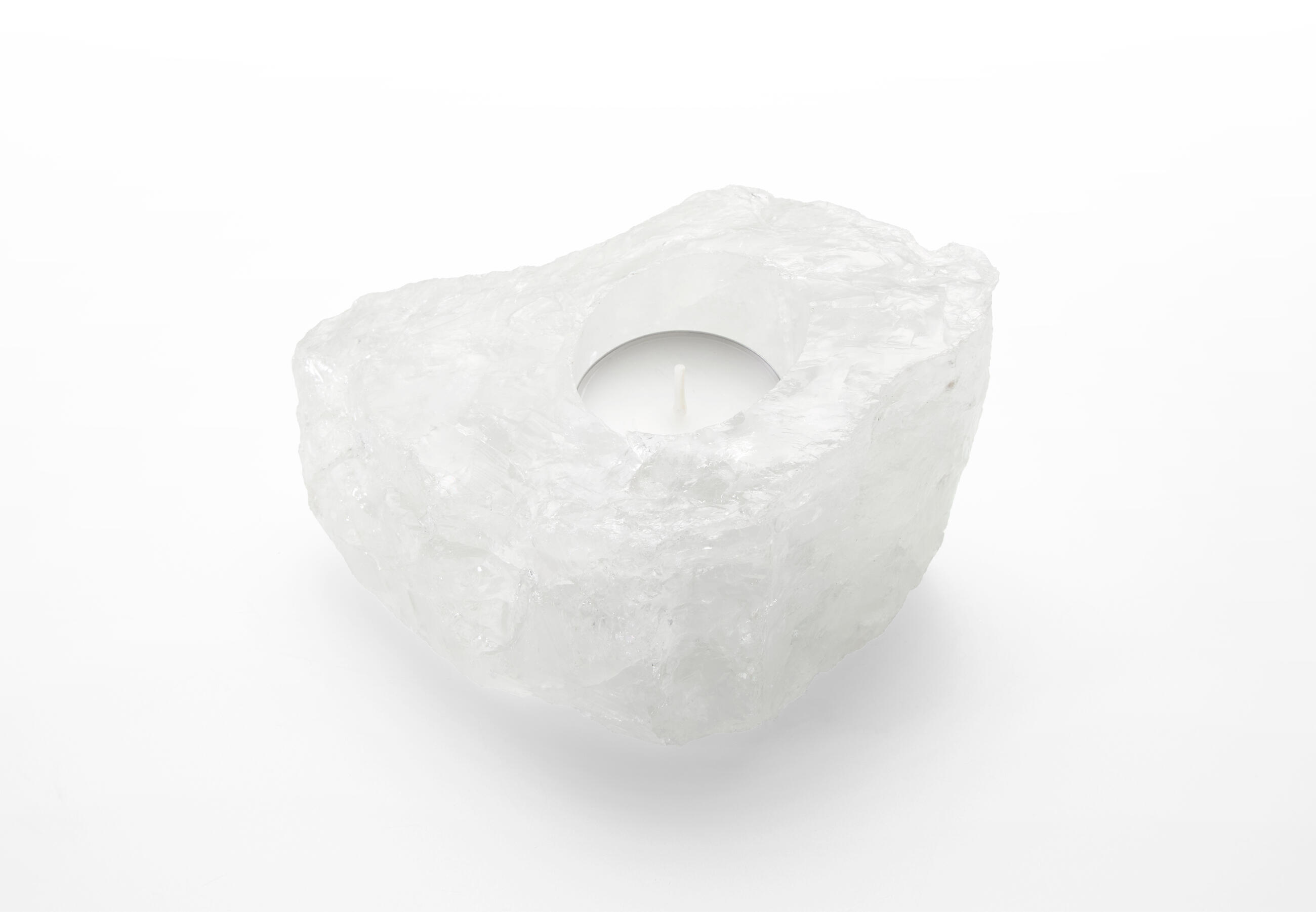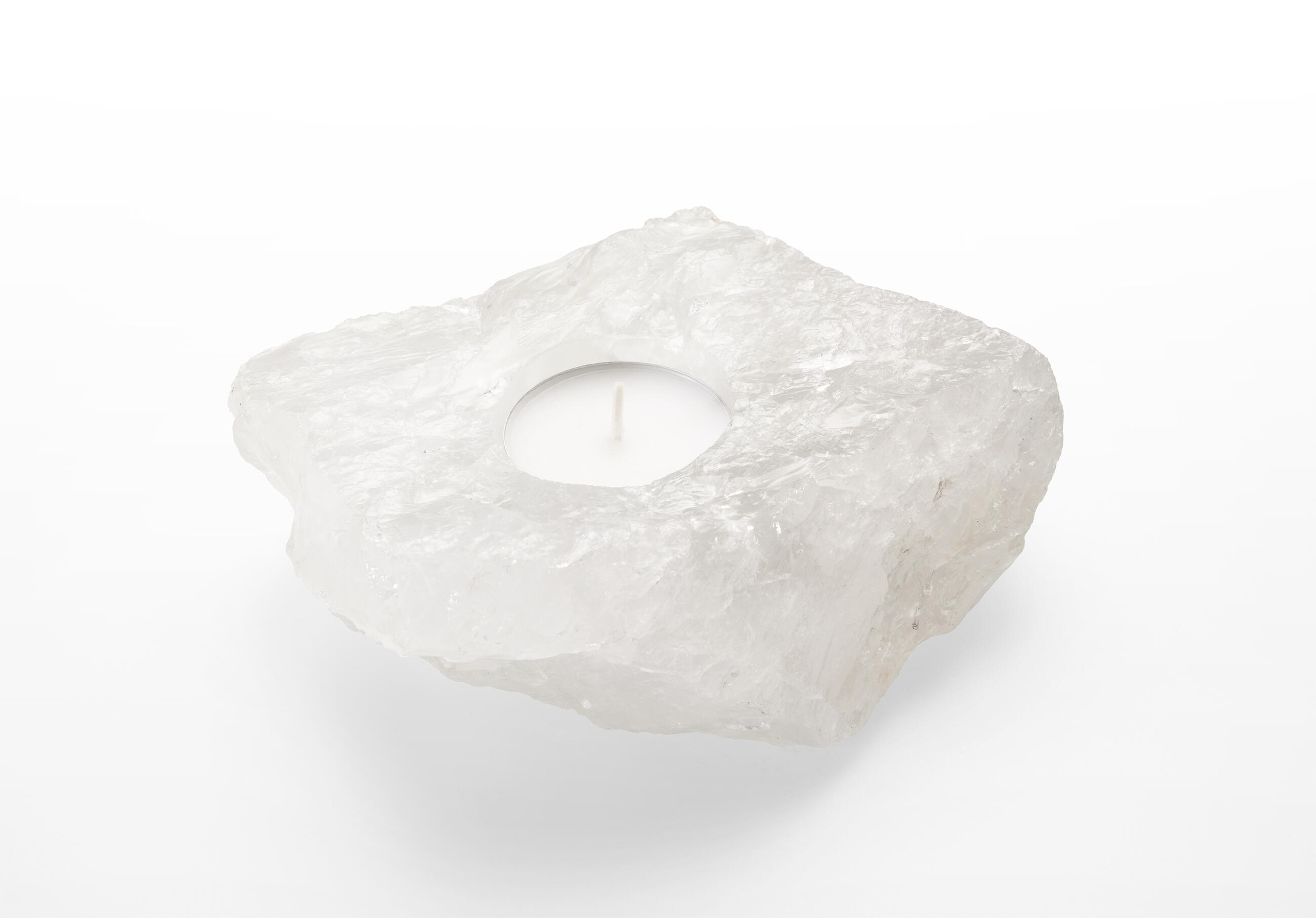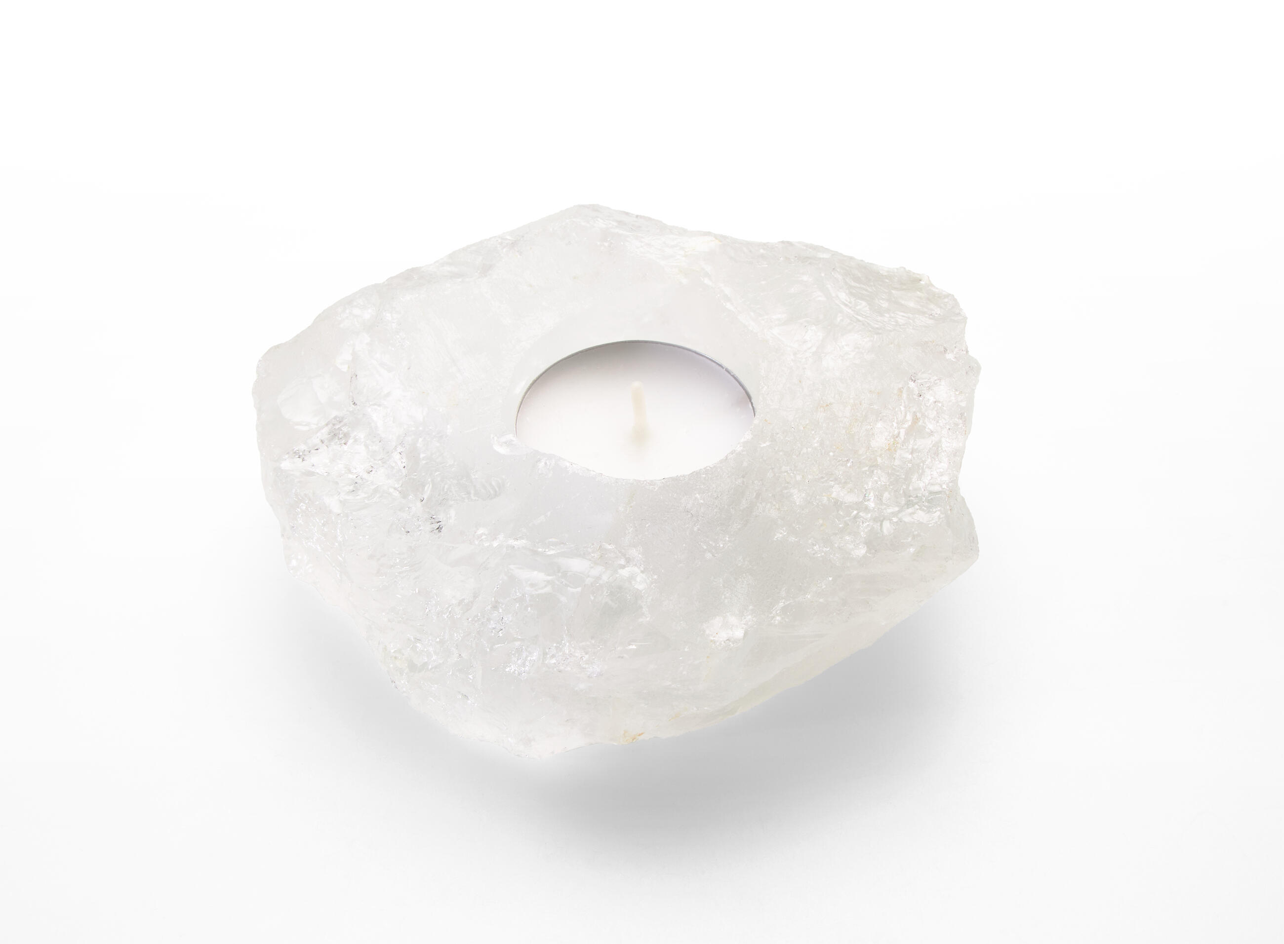 About the product: A candle holder made from a raw piece of translucent rock crystal with a hole on the top for a tea-light. The bottom part of the candleholder has self-adhesive silicone tips, preventing it from scratch. Each piece is an original different in size and shape. The weight of candleholders varies approximately between 0.5 and 1 kg and their size approx. 10 - 15 cm.