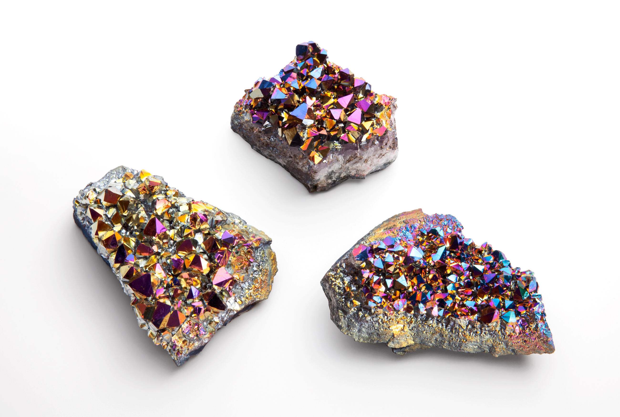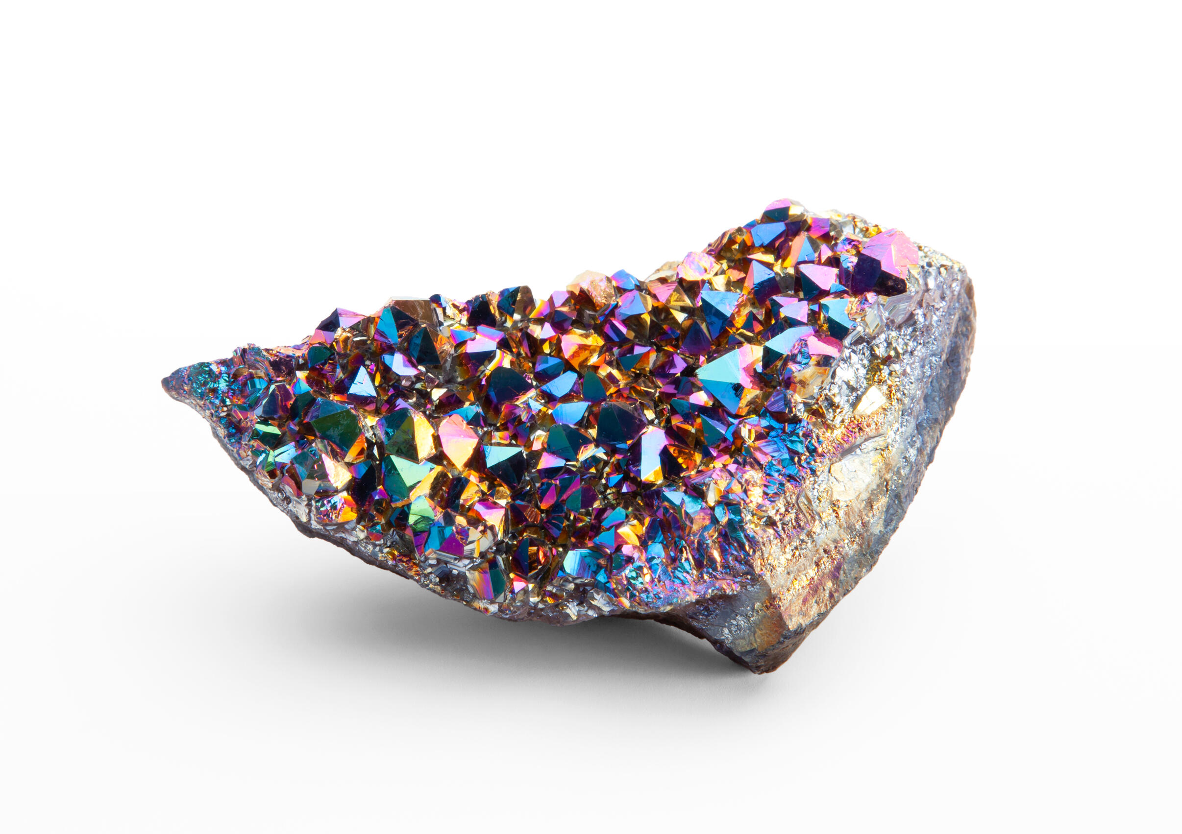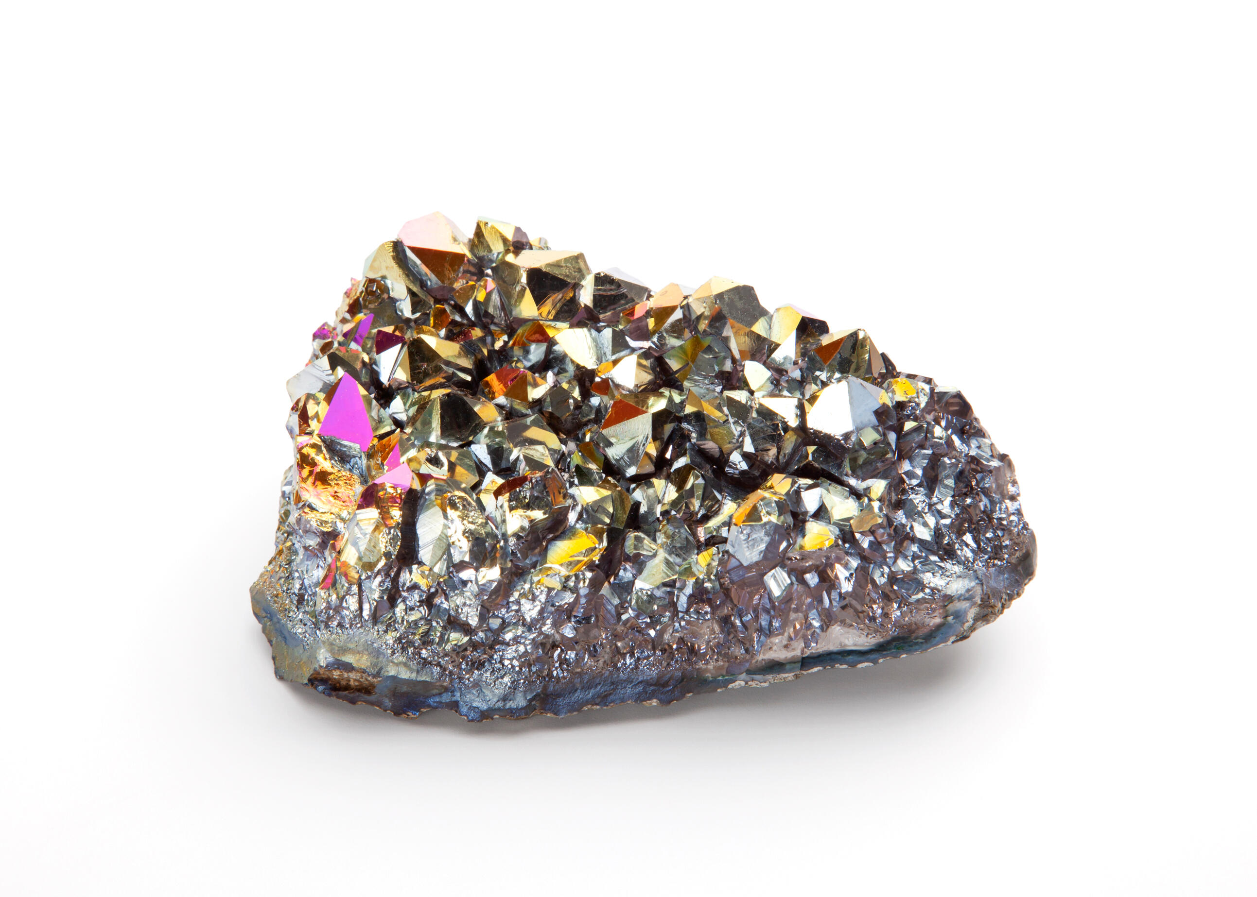Ametyst aura is a pure natural amethyst coated with a metal, which creates its unique golden and blue colour with enchanting rainbow gleams. Plating is a technology, which uses high temperatures and absence of air. Amethyst is plated with a thin layer of a metal - in this case it is chromium and aluminium. The applied layer of metal is stable.