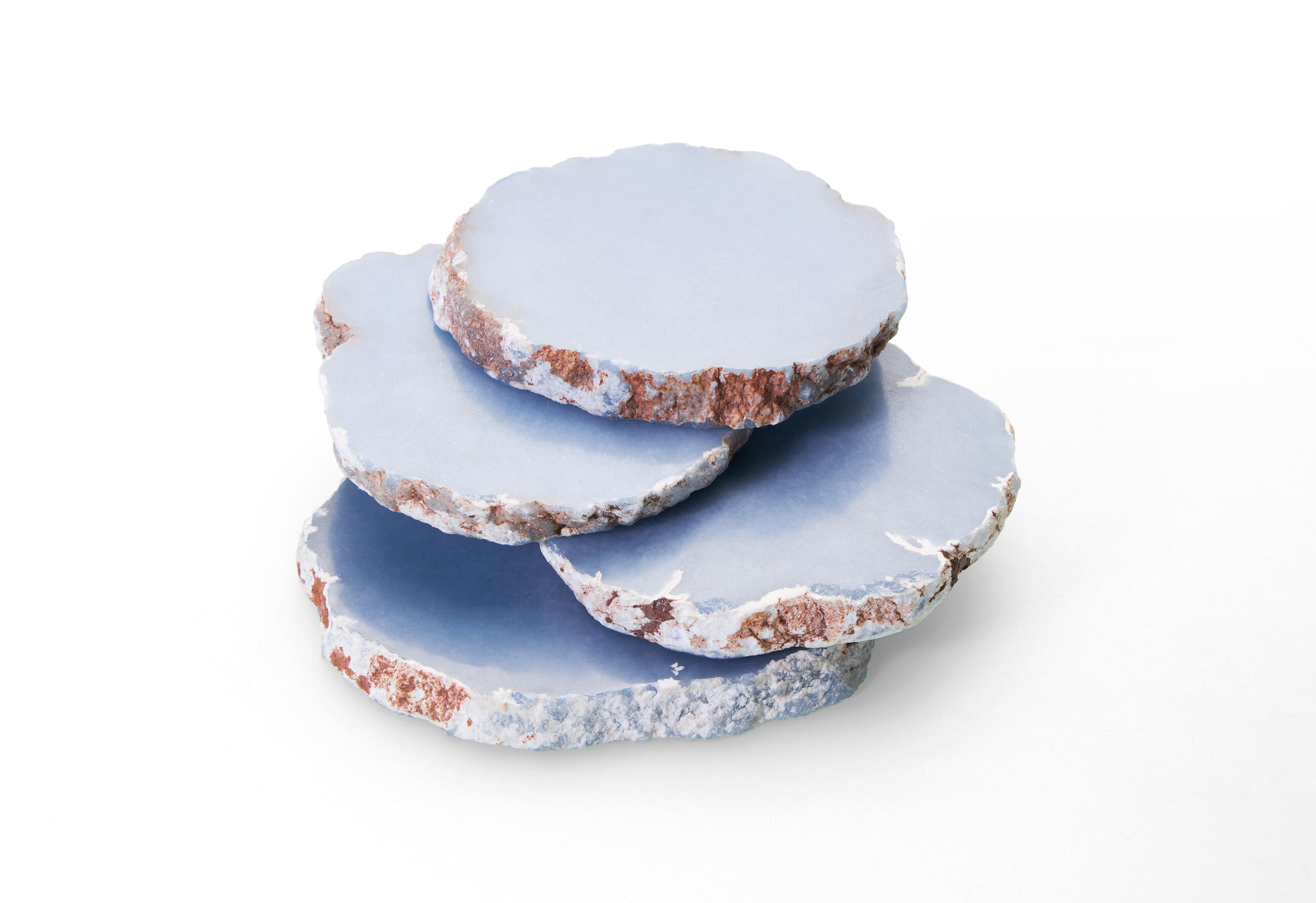 About the product: The box contains slices of angelit which were polished from both sides. Their size varies approx. from 5 to 10 cm and they are approx. 1 cm thick. Stones are carefully arranged into three-layered paperboard boxes - these are firm and resistant, which makes them easy to store. The boxes are wrapped into stretch cling, which prevents them from damage. Folded boxes provide a complex presentation of our minerals.