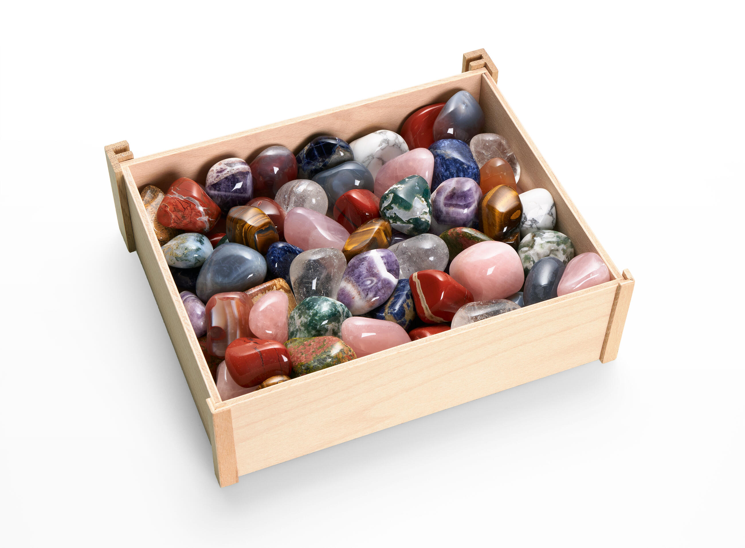 Tumbled Stones in Wooden Box