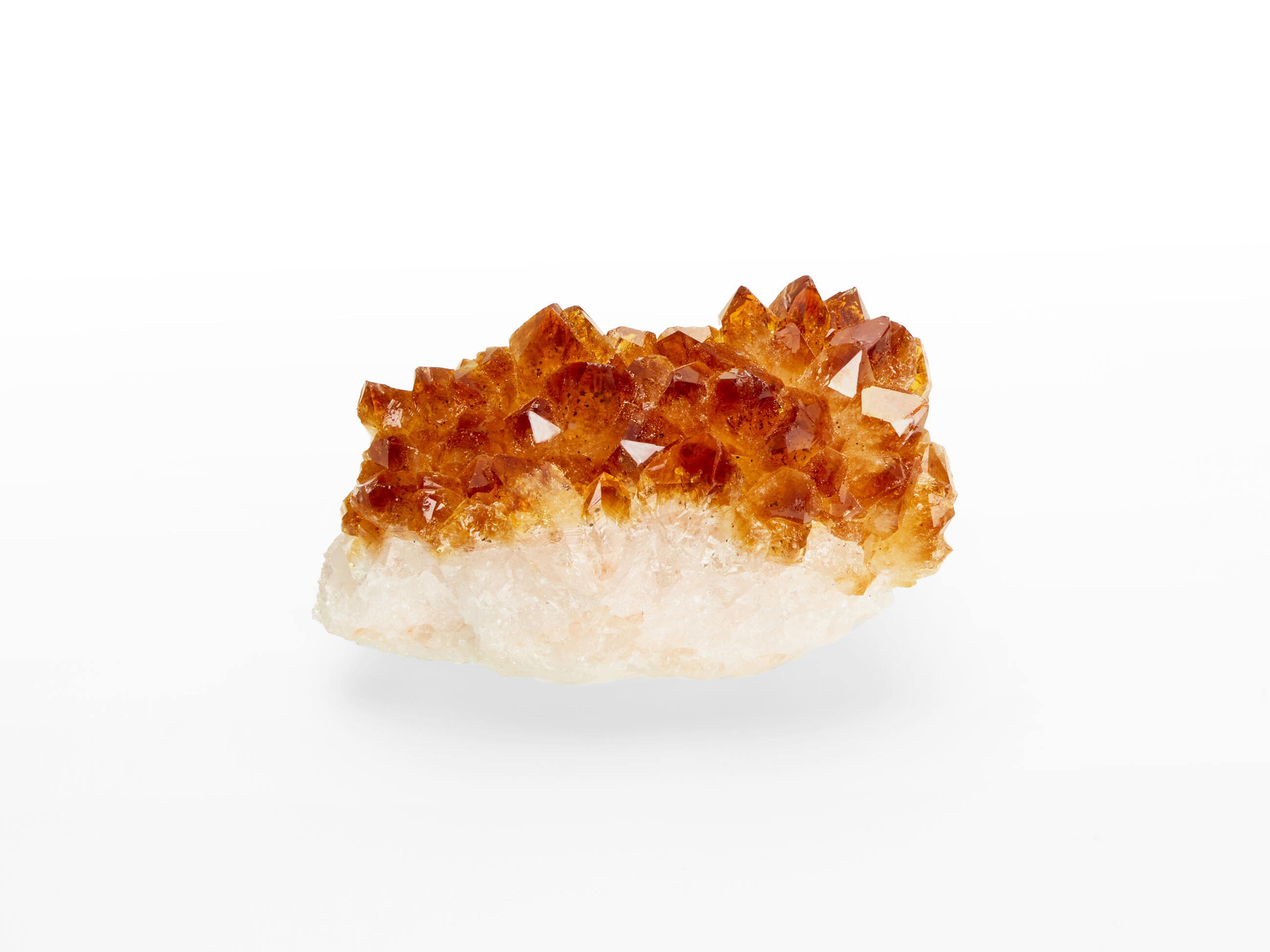 Citrine is a yellow variety of quartz. Natural light yellow citrine is often called Lemon Quartz on the gemstone market and as it is very rarely found, therefore the stone is often made by heat-treating amethyst. These citrines has the same origin. Citrines made from quality amethyst stand out with their goldish shade of yellow and they are a popular substitution for expensive natural citrines. These citrine druses come from Uruguay.