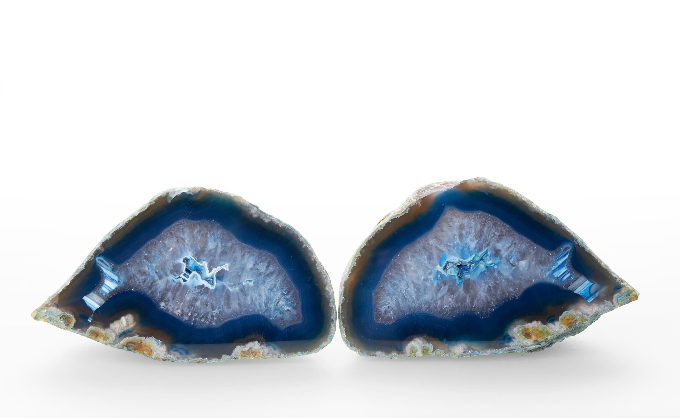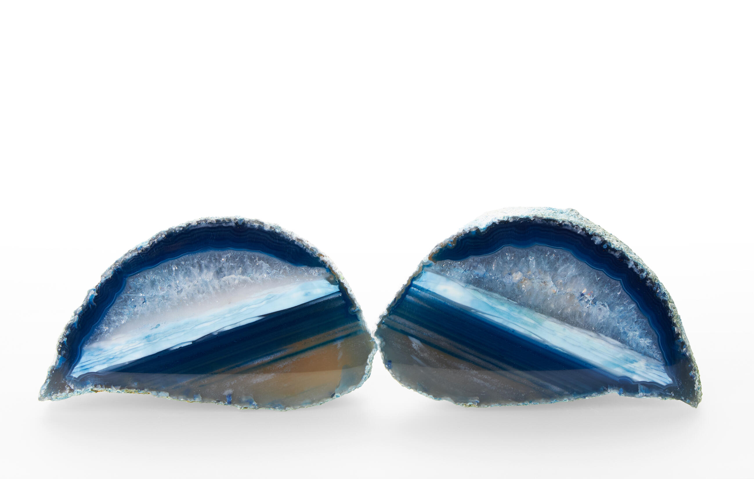 Rough agates, which have been cut in halves and polished from the front side. Thanks to this treatment, the unique patterns and regular banded lines typical of agates can stand out. Some varieties form tiny little cavities with small crystals of quartz. Our agates are from Brazilian mines in Rio Grande do Sul.