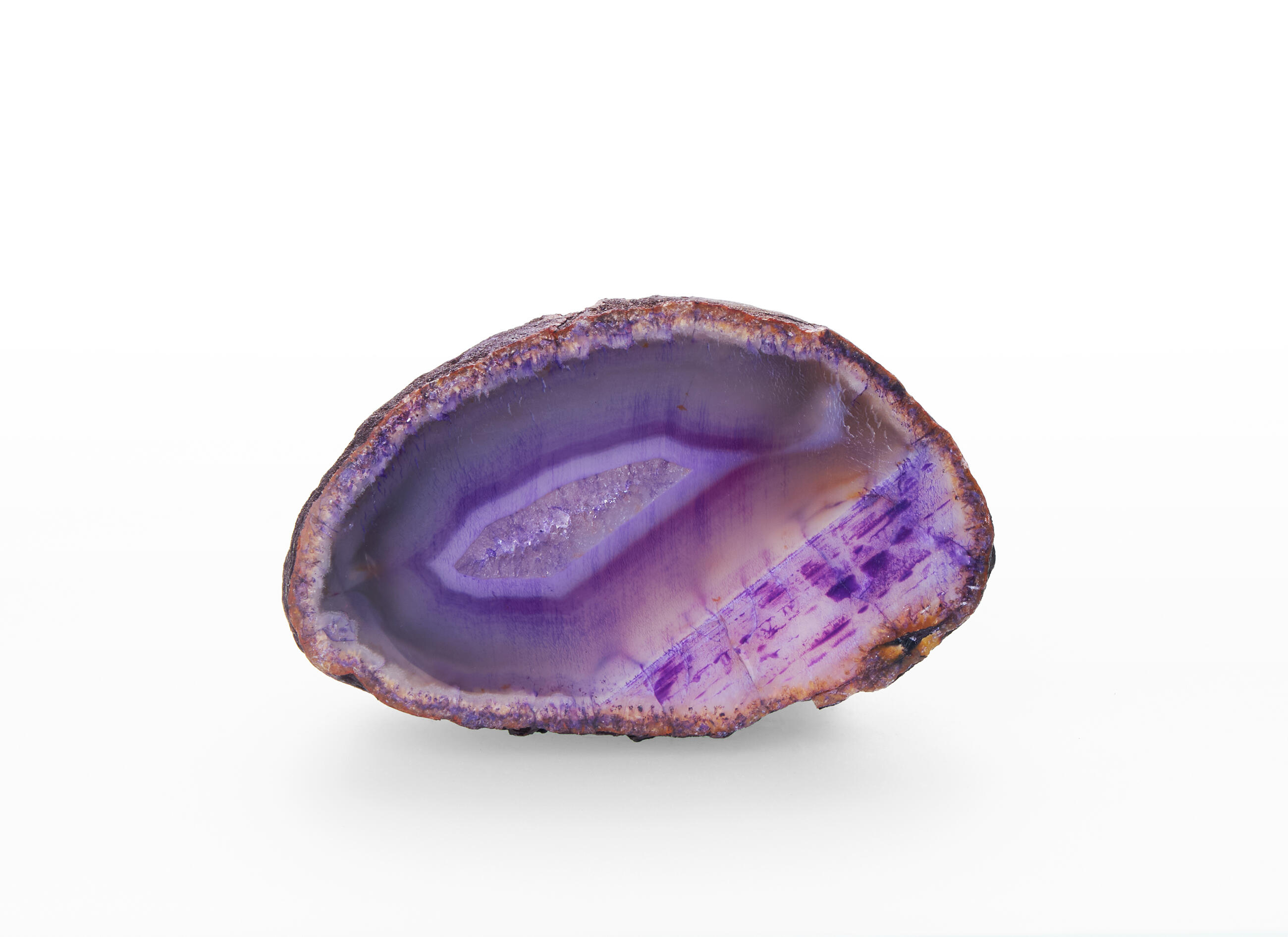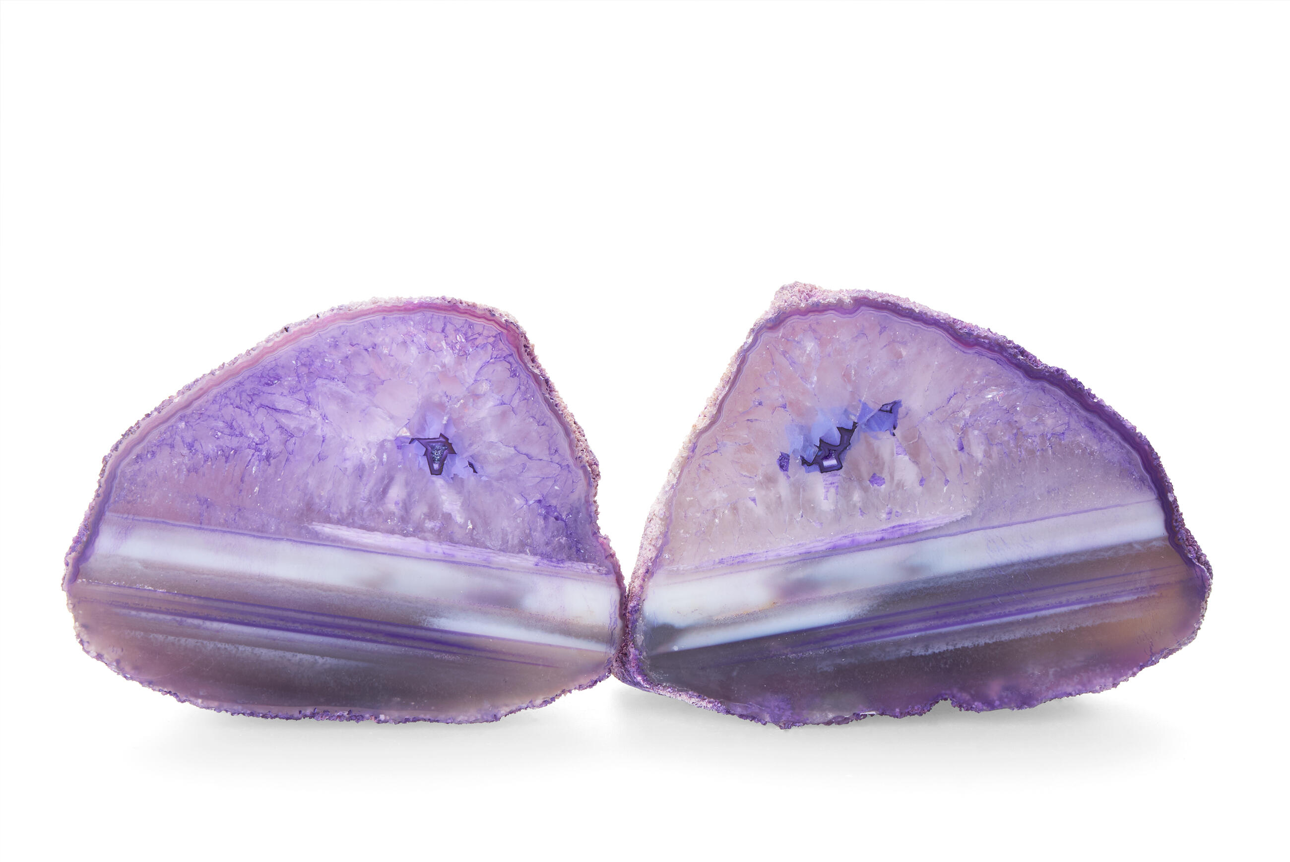 Agates are characteristic of their colourful heterogeneity, and this purple variety is no exception.