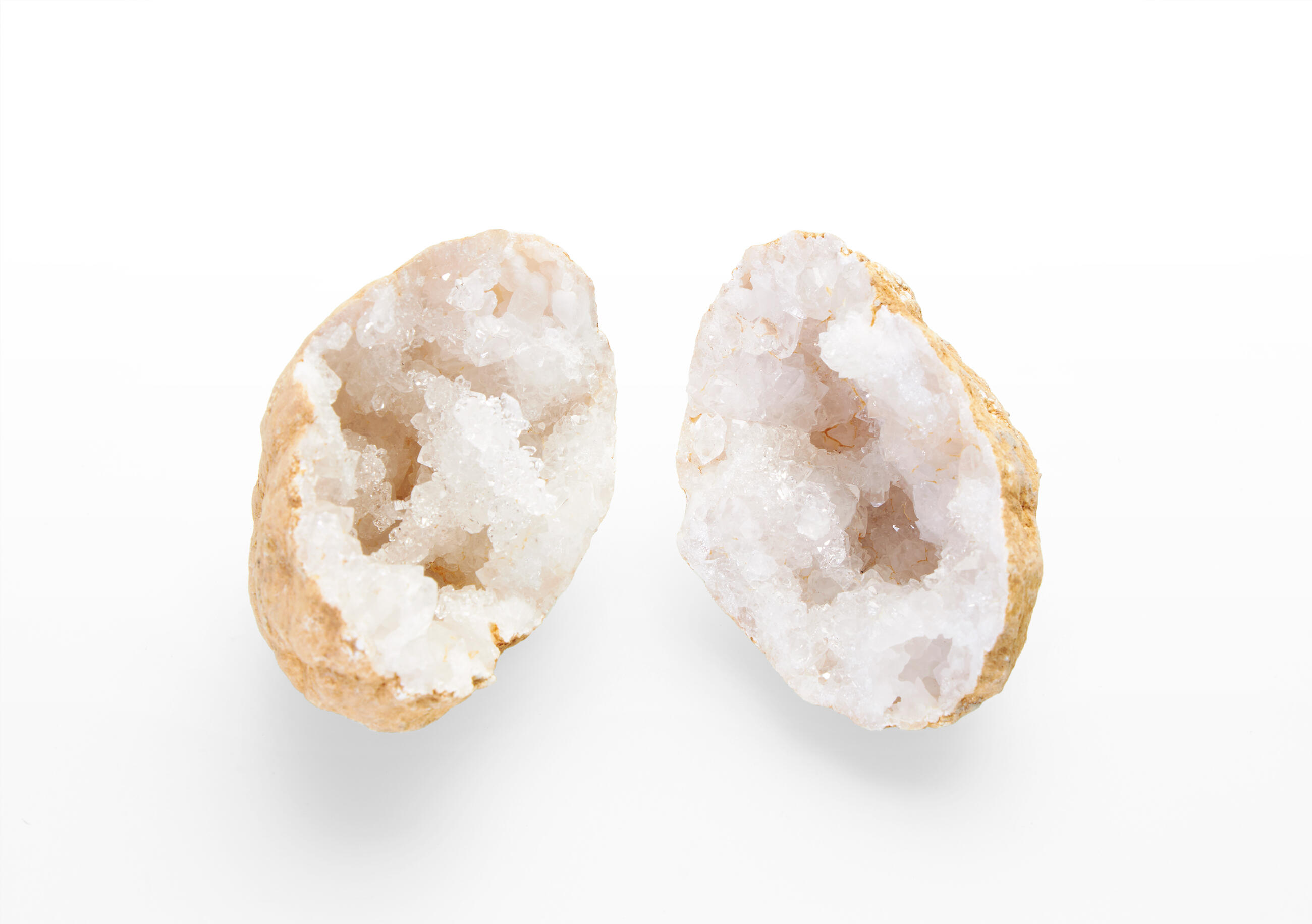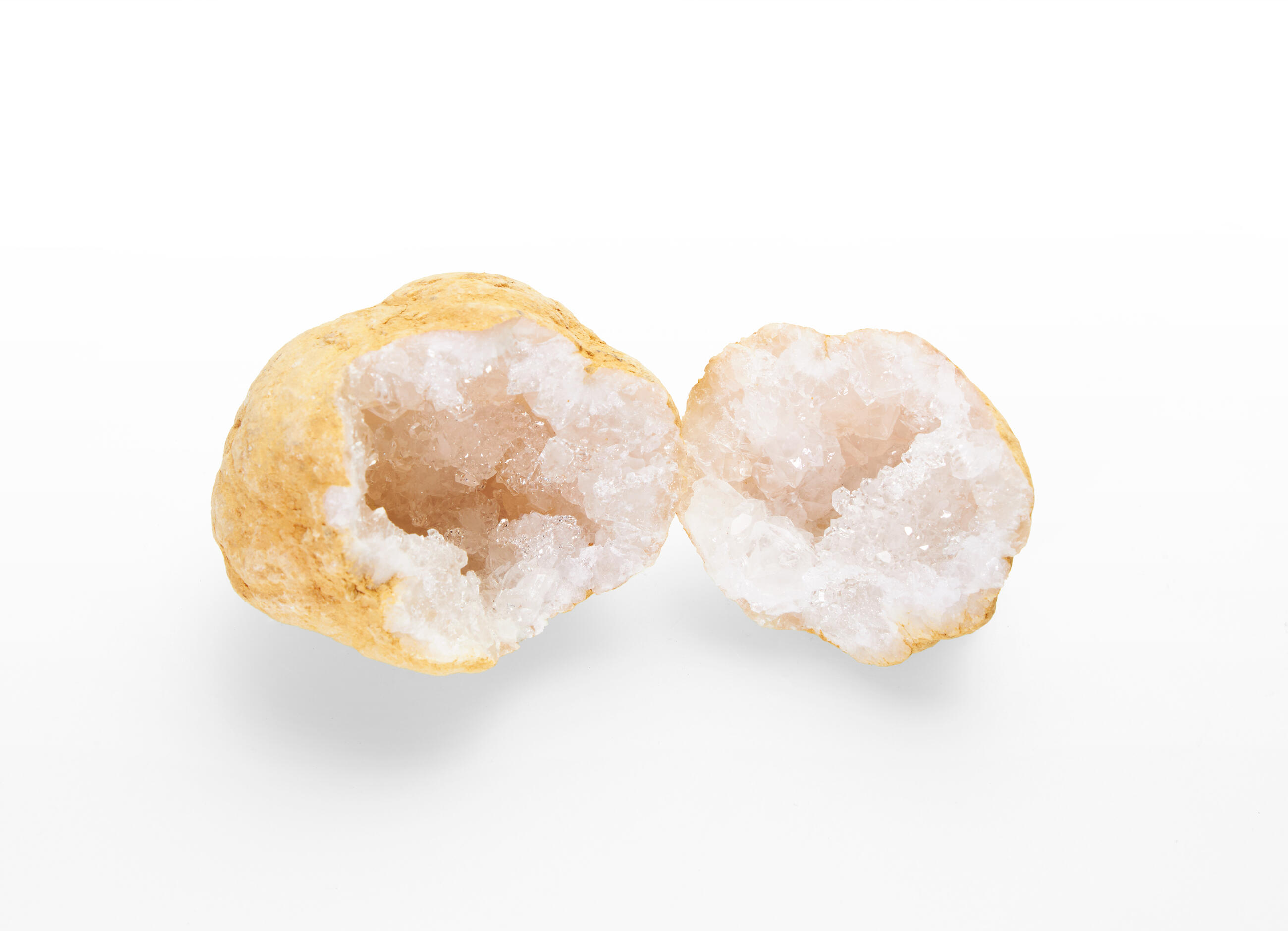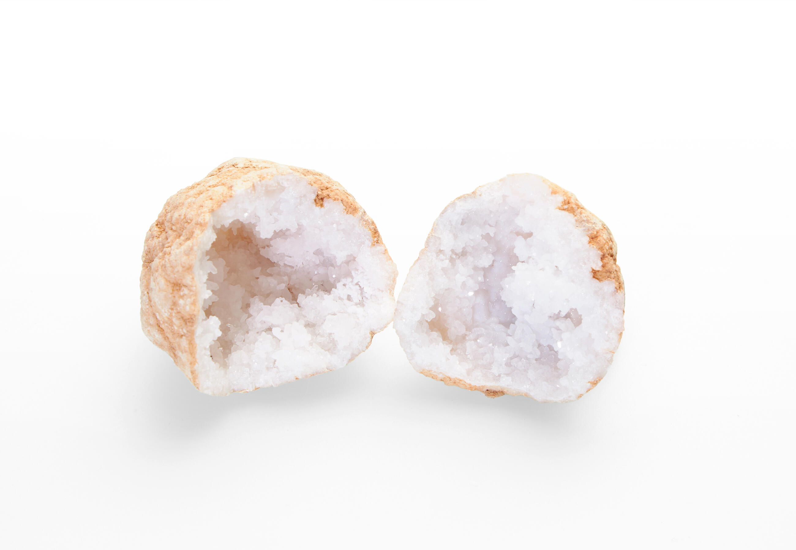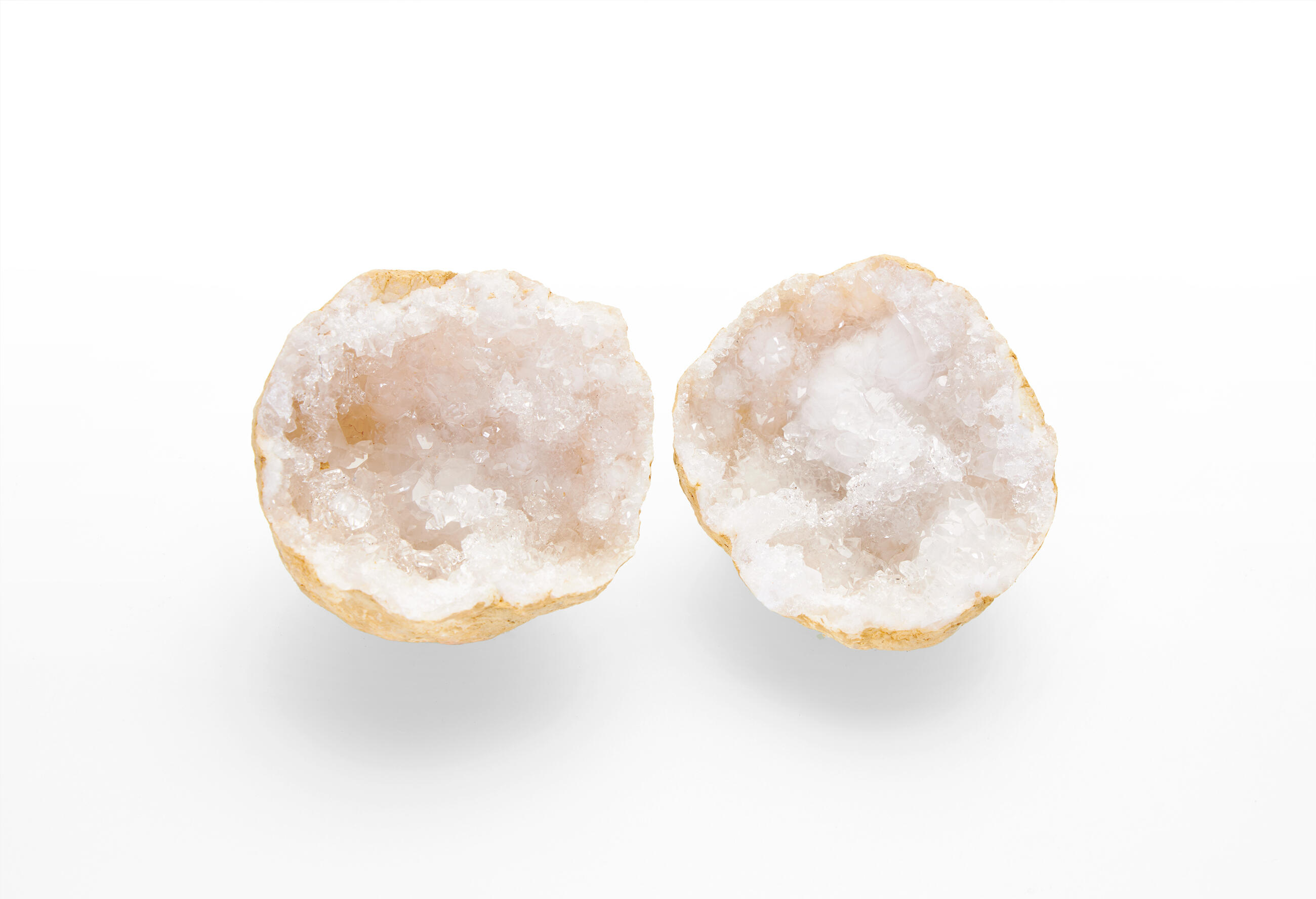 Geodes are spherical rocks that contain hollow cavities lined with crystals. Geodes are cut in half so their charming interior can be seen. Their origin is in Morocco, where geodes hide within rock sediments. Most often they come in globular shape with limestone on their surface. Inside the geodes are filled with glittering crystals - they often form astonishing cave formations.