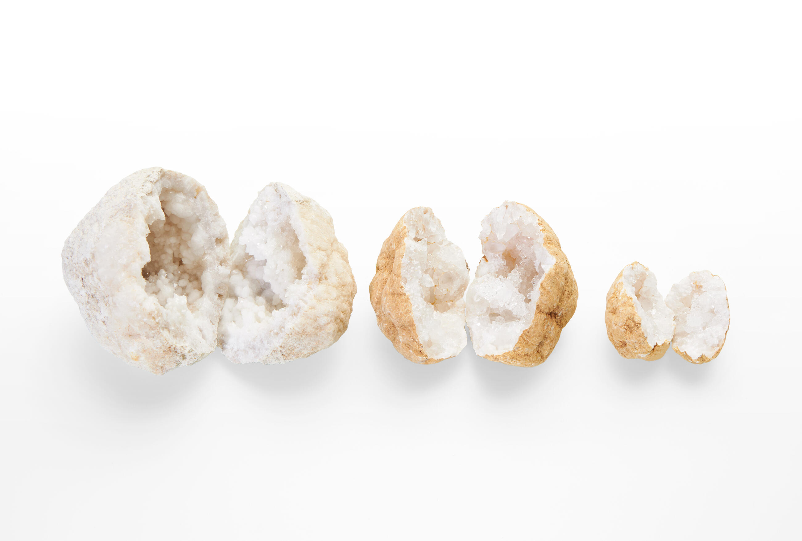 About the product: We offer geodes in various sizes from 3 cm up to 10 cm and bigger. They are available in economy bulk package in a cardboard box - number of pieces in a box varies depending on the size of the geodes (10 - 300 pcs/box). Weight of boxes ranges from 13 to 16 kg - the weight related to each product is approximate - you will be charged the real weight of a box. In packages with 100, 200 amd 300 pcs, the pair geodes are joined together with a rubber band.