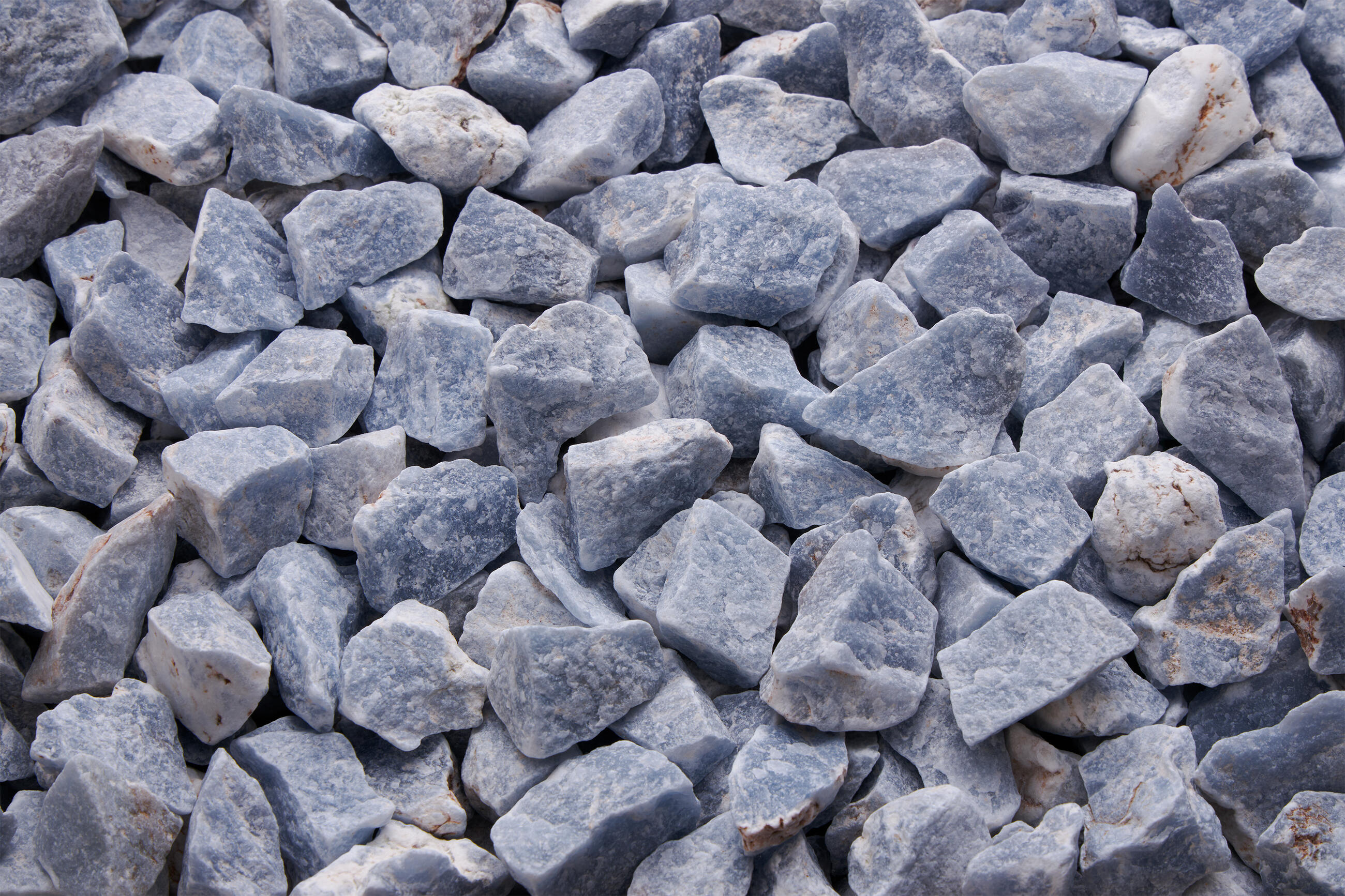 Angelite is a blue-white or blue-grey variety of anhydrite. Since anhydros means without water, there is no water in the stone’s structure. If we look at its chemical structure, angelite is calcium sulphate. It is a semi-transparent, dark or light, fine-grainy mineral from Peru.