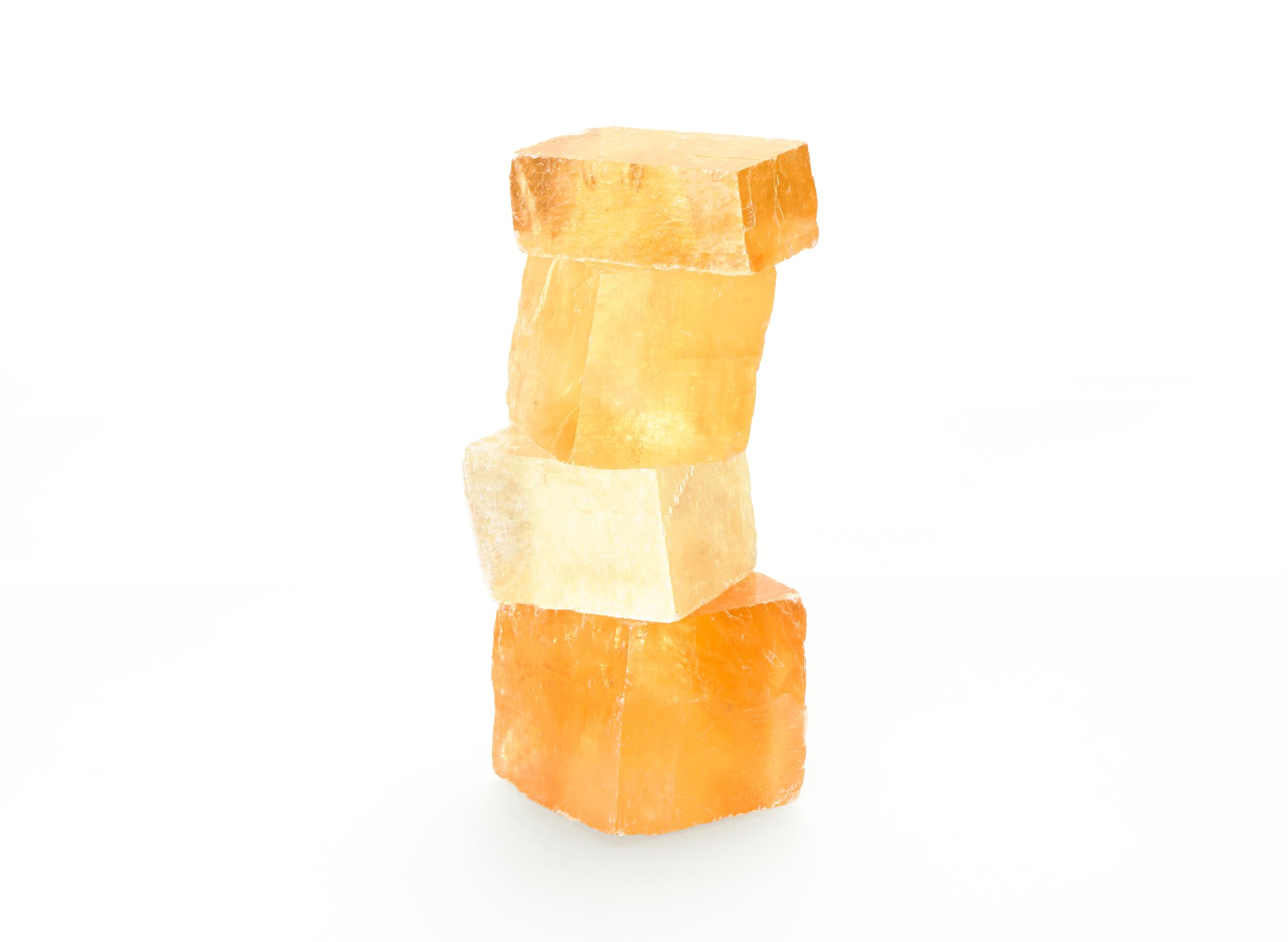 Calcite is a very delicate stone and one of the most common minerals on earth. Its numerous inclusions and admixtures influence calcite’s colour design. Transparent calcites are noted for their striking double refraction, which occurs thanks to the single crystals. It is a very fragile and fissile stone, which requires individual, manual processing and faceting. Our rough material comes from China.