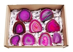 Introducing our new sets featuring polished agates with a cut base – these include smaller, premium-quality pieces approximately 5–9 cm in size. Choose from the following colour variants: red, blue, teal, purple, pink, and natur.
