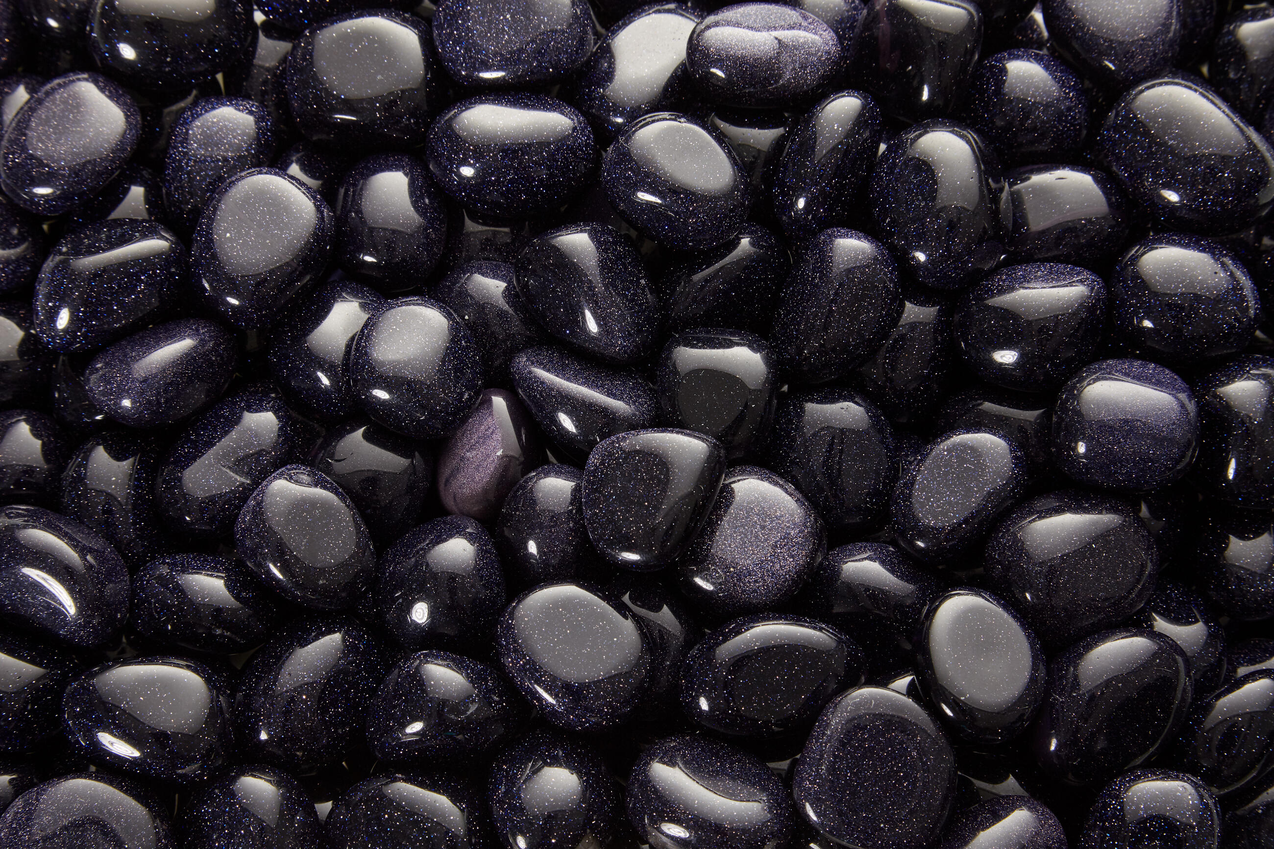 Blue goldstone is a popular, artificially made stone catching one’s eye with its glittering blue colour. This piece is from India.